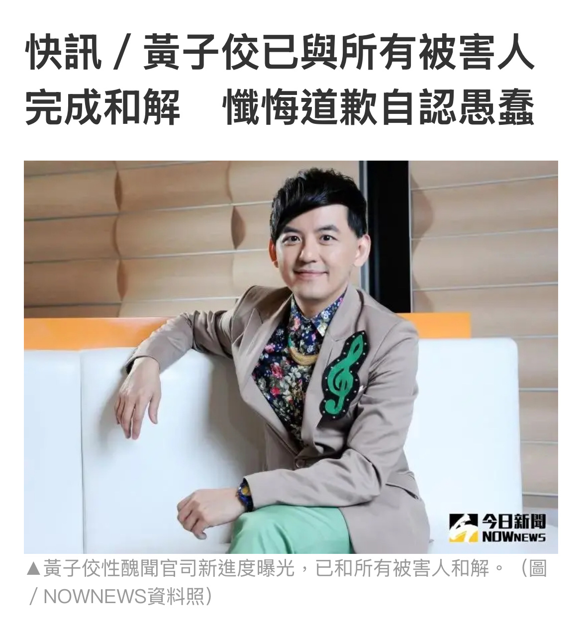??????这是什么奇幻新闻黄子佼委托律师发声明,称与所有被害人(30名)全部达成和解。