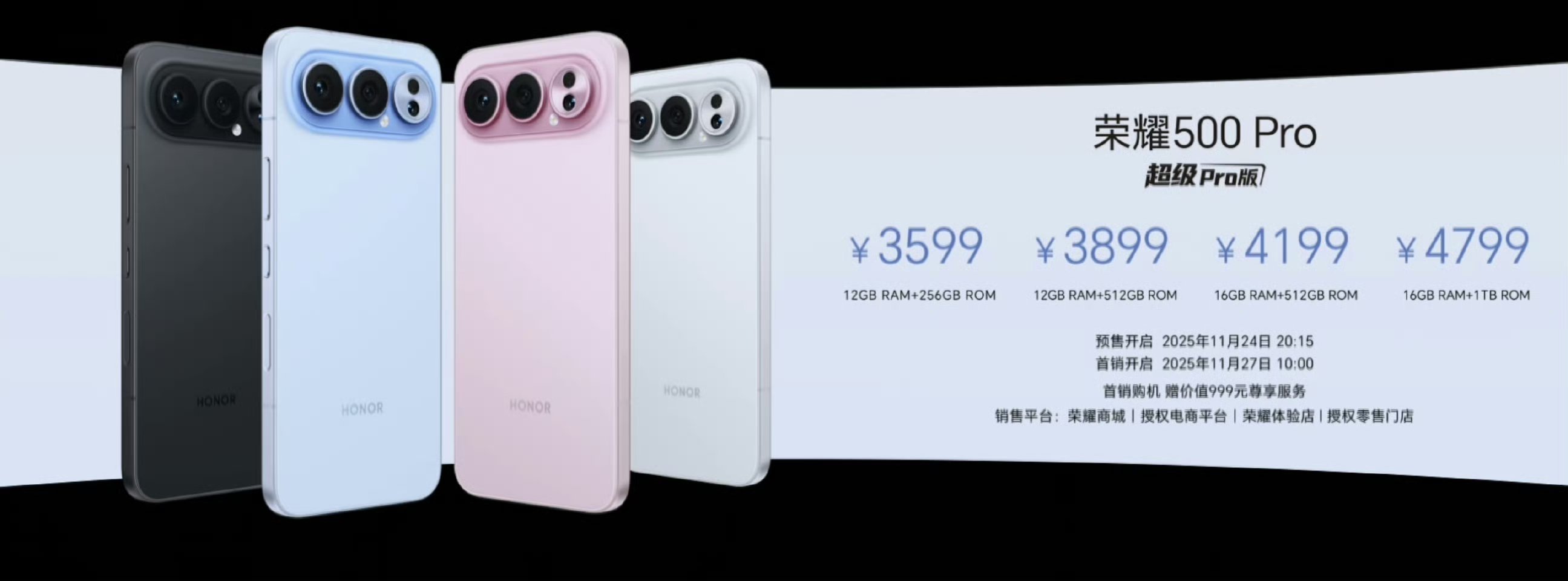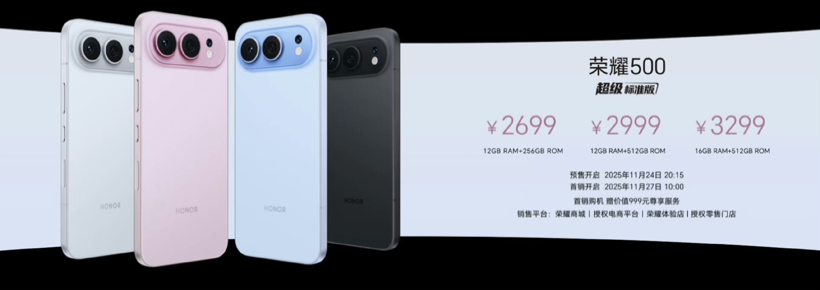看我小尾巴,这次的荣耀500系列,结合2699起步价格,综合硬件配置和体验来看,表现很全面的。七哥拍了点图直接放下面了,大家可自取!如果说是荣耀500标准版是强的话,那么荣耀500 Pro就是比强更强!用配置说话咯。全系主摄都是2亿像素1/1.4英寸的超大底传感器,能在五个不同的焦段之间切换。这次最厉害的地方还有在于它拍摄Live的体验堪称全能,人像模式下无论是前置还是后置都支持Live实况的美颜和虚化双重叠加。正面的屏幕部分这点是荣耀的老强项啦,不仅全系都是6.55英寸直屏。配1.05mm窄边框。沉浸感更强的同时1.5k分辨率460的PPI,在显示这块也没太大的毛病,6000nits的峰值亮度。基础硬件全系8000mAh青海湖大电池,骁龙8系处理器,六边形战士了属于是。全维度的提升,价格在2699起步直接真香好吧。总得来说出色的机身质感,竞争力放在同价位的产品里都能算上的是越级。而两台手机除了硬件规格略有差别之外体验上基本没有很大的差距。无论是选标准版还是Pro版,都很合适!