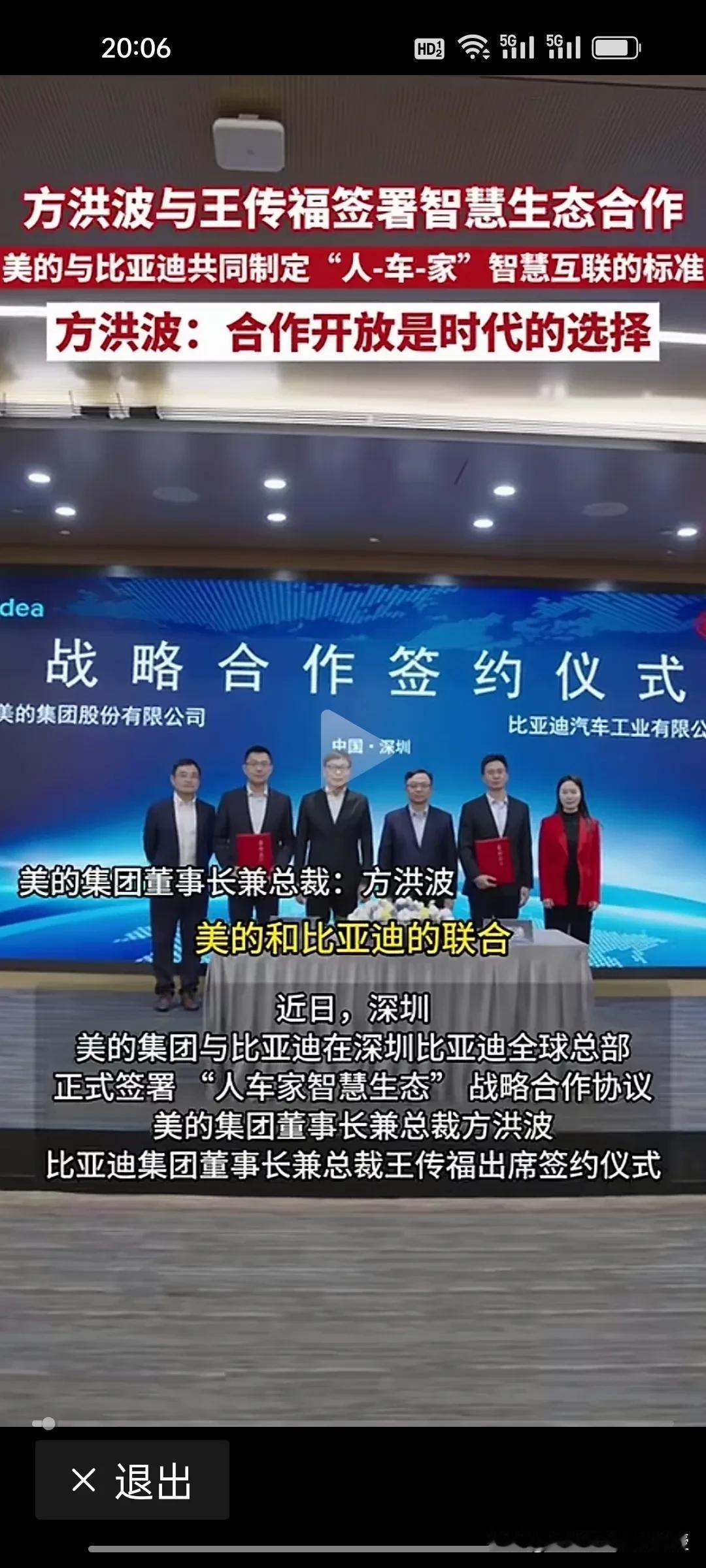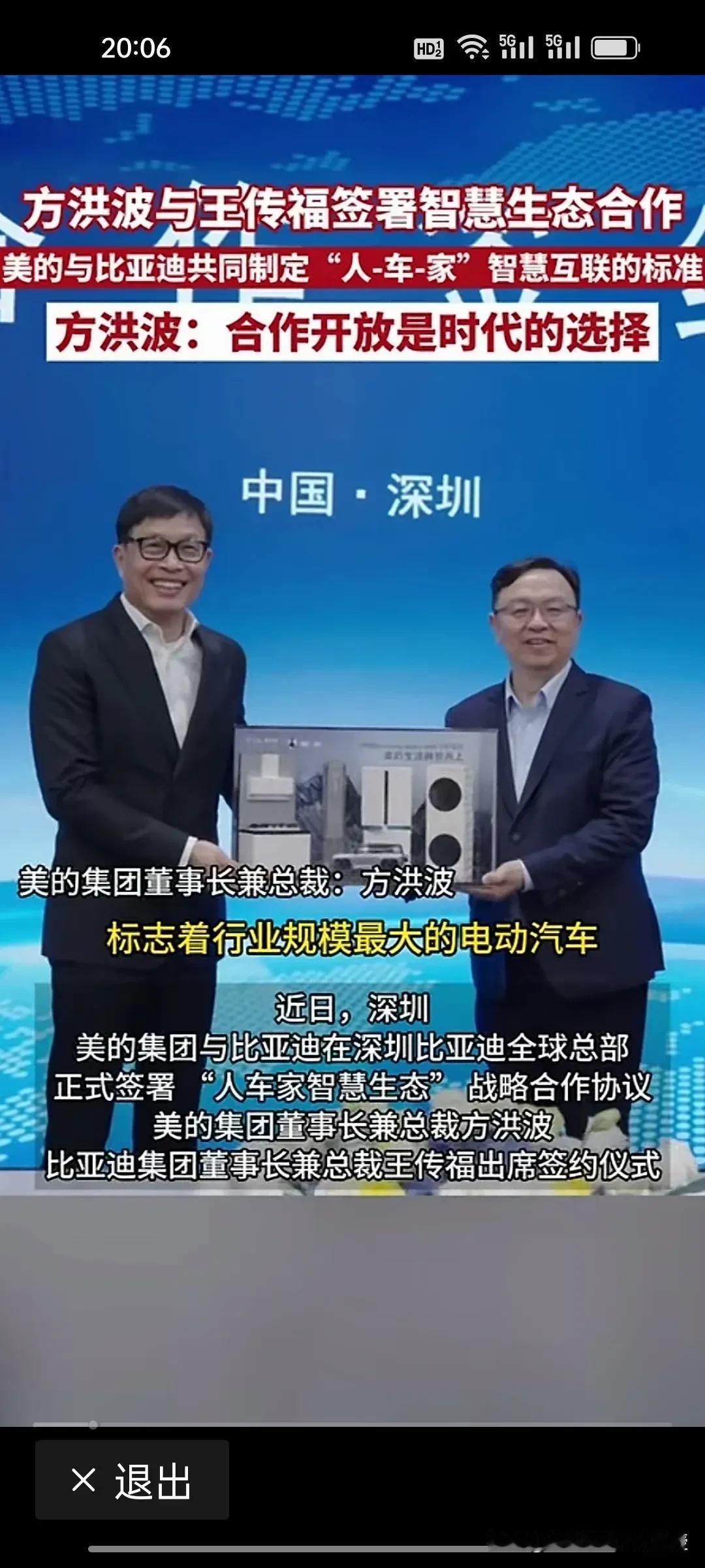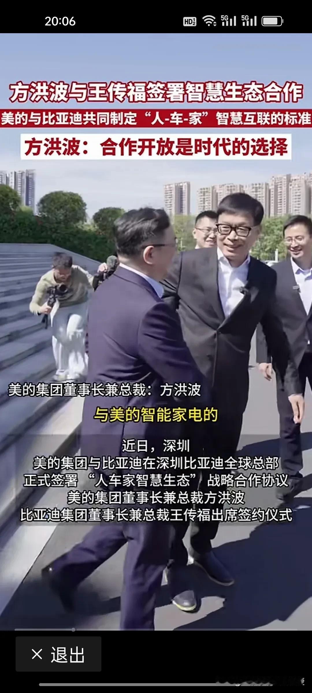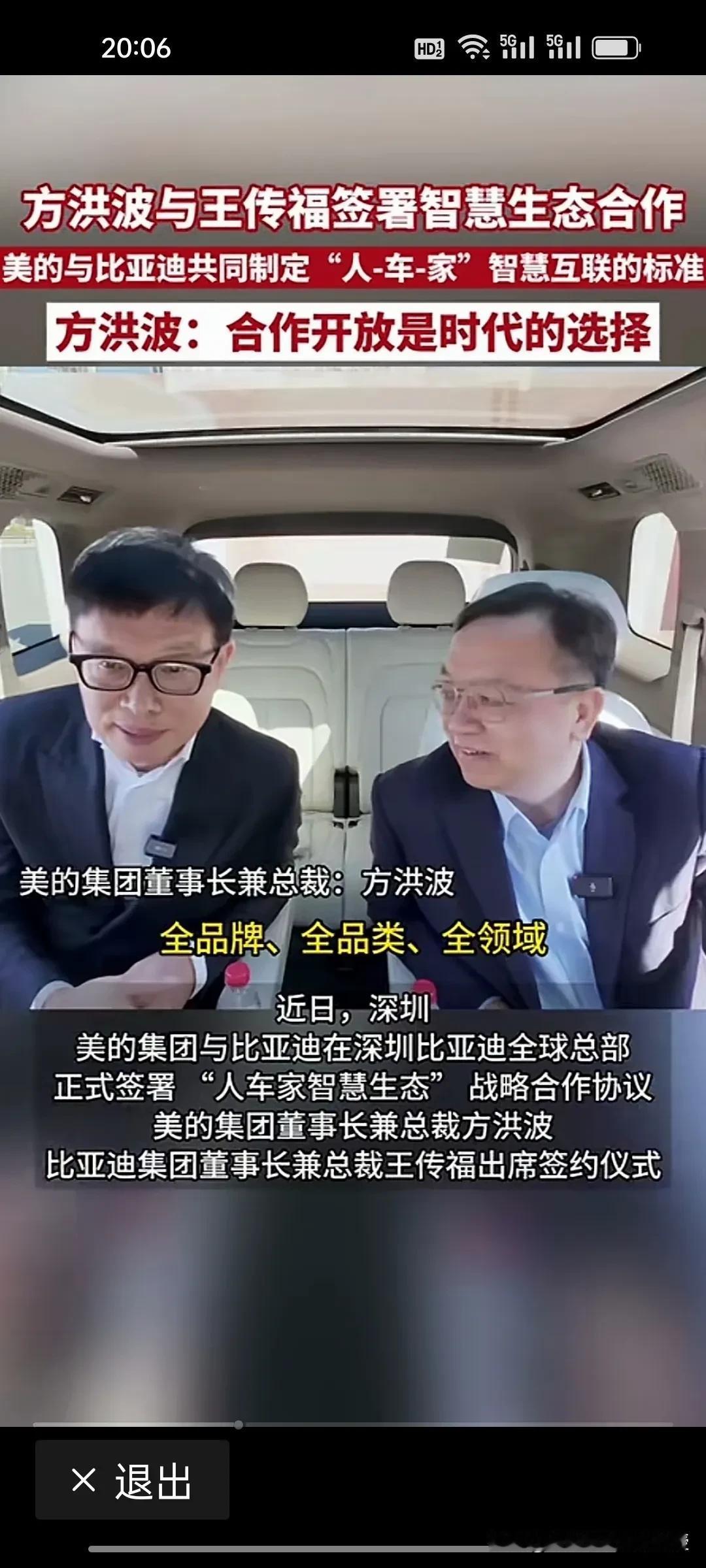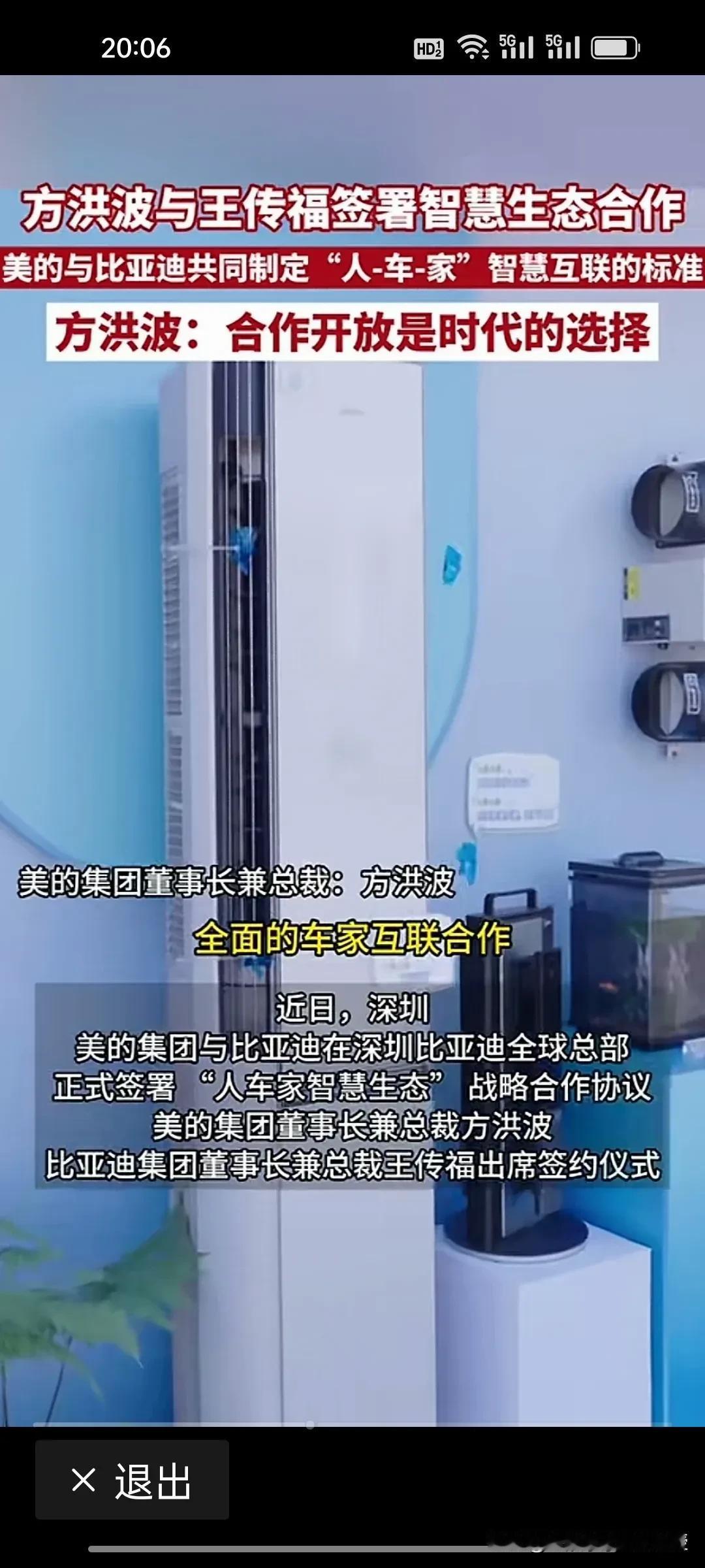 不光是车企都在排队找华为合作智驾领域,谁也没想到,比亚迪跟美的合作了!方洪波说:合作开放是时代的选择。 美的和比亚迪合作“人车家智慧生态”。前两天看到智己LS9能在户外露营实现洗澡功能,已经让人觉得不可思议。现在有了美的在家电领域的技术沉淀,比亚迪在车载家电领域必将有大突破。 如今,王传福这个全面合作的战略确实是让比亚迪品牌突破天花板,更具竞争力。