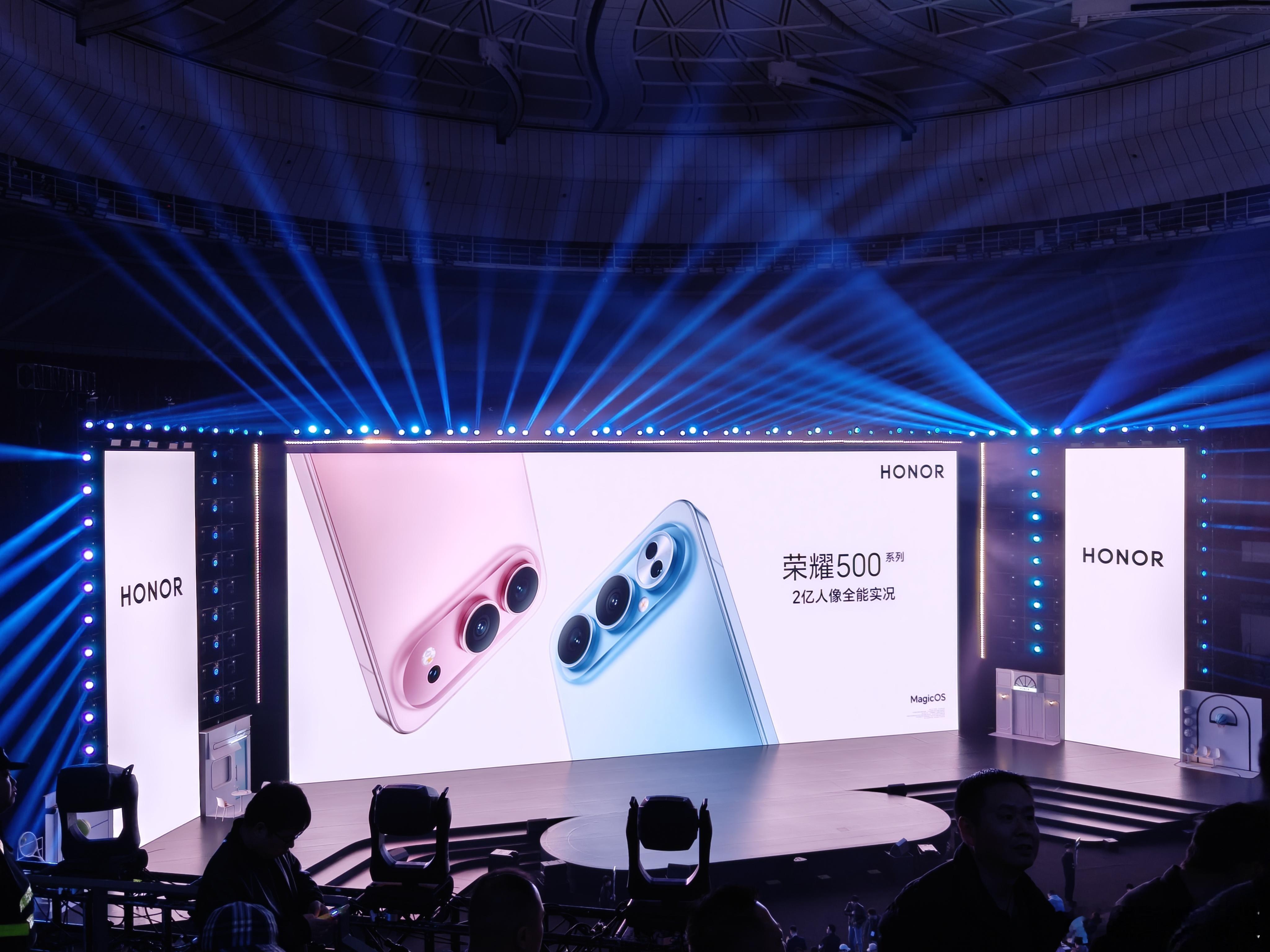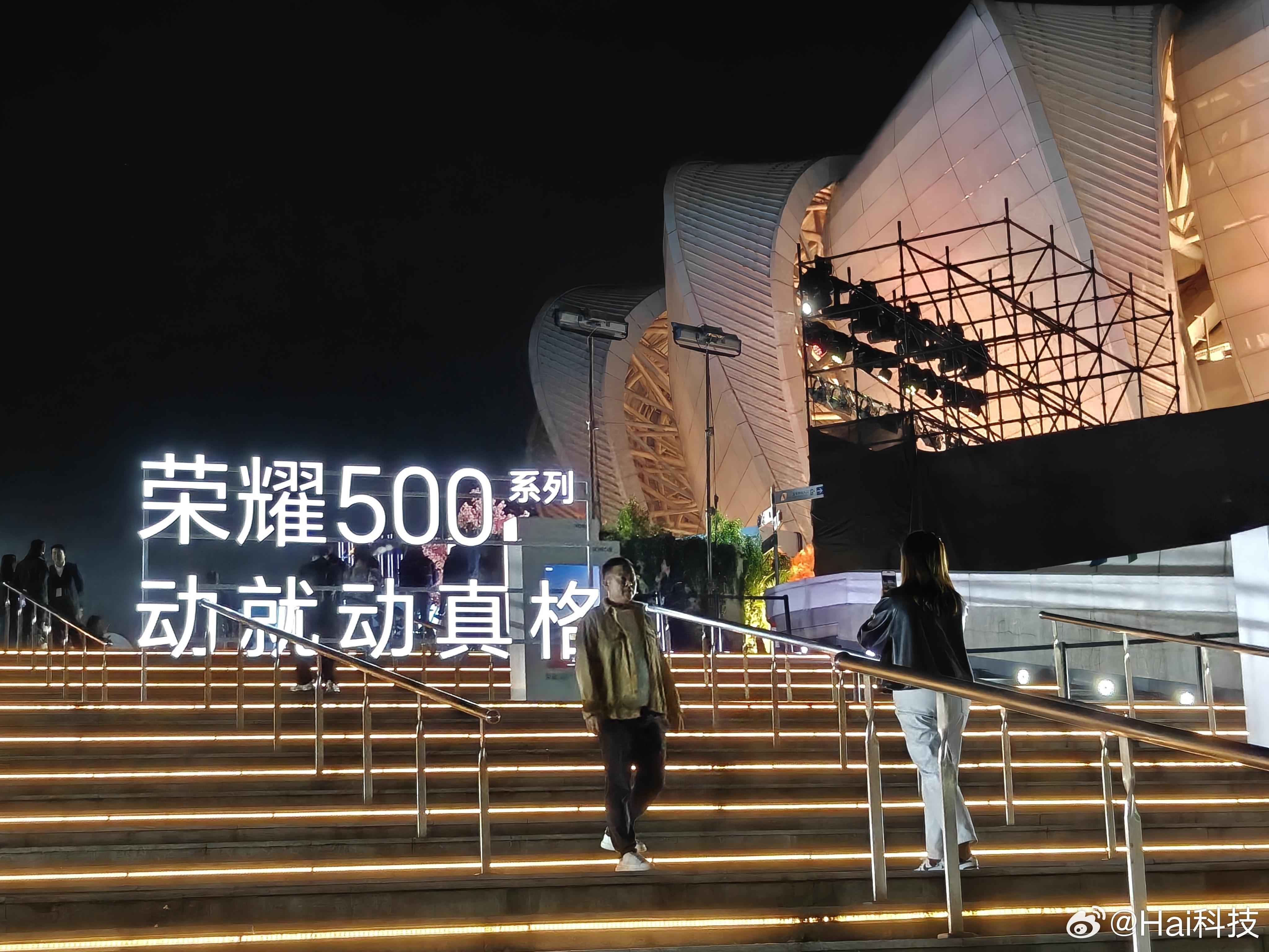 到荣耀500系列发布会现场了,现场布置还是很用心的,主打2亿人像全能实况,😎哥这次又是C位,各就各位,19:30发布会正式开始,给大家直播