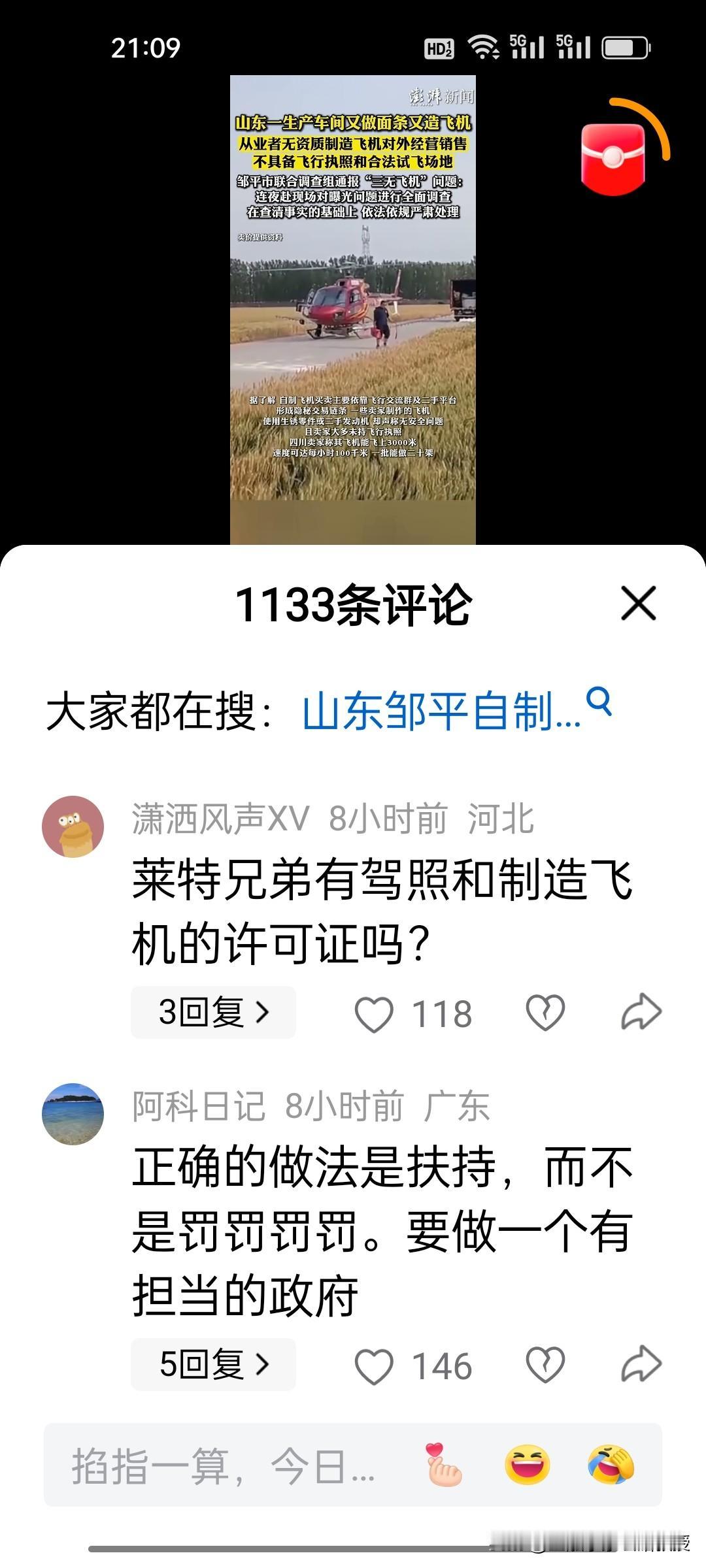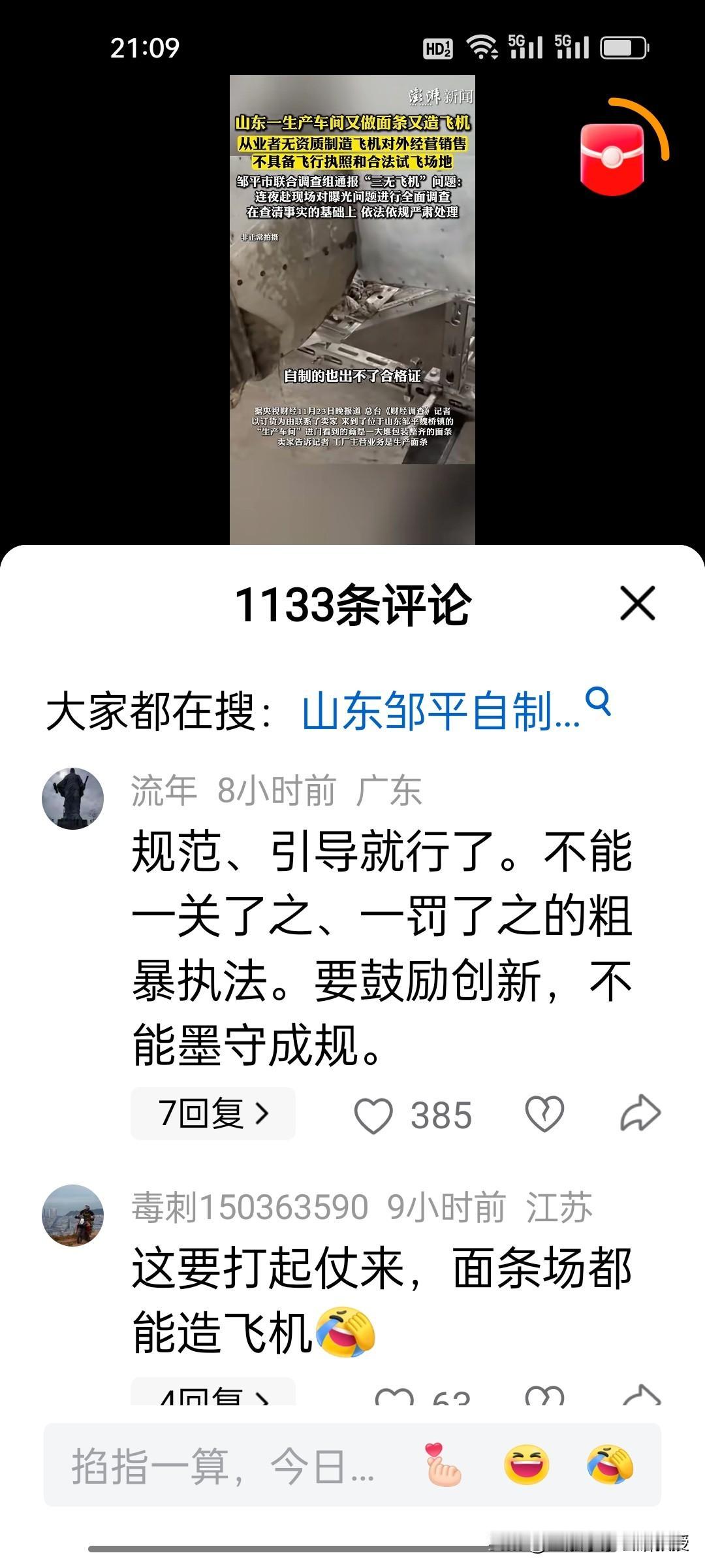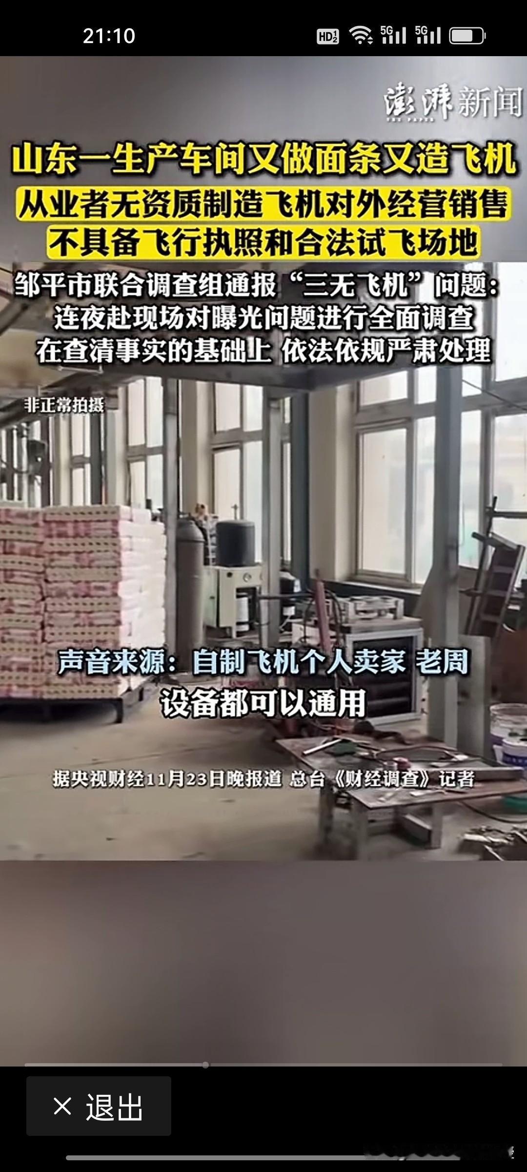 真的是开眼界了!《央视财经》栏目报道,山东邹平一家做面条的厂竟然能造飞机,因为做面条的机床与造飞机的机床可以通用,因此成立了飞机制造工作室,但是这个厂没有造飞机的资质,飞行员也无驾照,因此被邹平市联合调查组严肃处理。 但是网友们评论不一,认为民间确实有高手,要鼓励民营企业造飞机,要给予这样创新创造的企业一定的科研支持,要鼓励民企进入垄断行业,毕竟创业不容易,不能一罚了之。你怎么看?