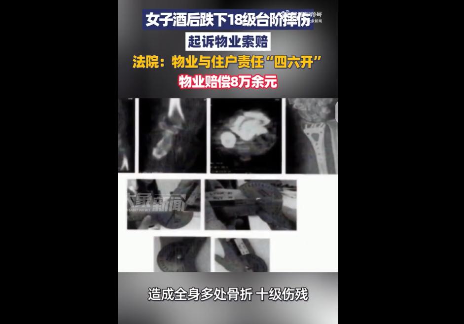 江苏昆山女子王某酒后抄近道走敞开的消防通道,因通道无照明从 18 级台阶滚落,构成十级伤残。 她起诉物业公司未装照明、未关通道门,索赔 26 万余元。 法院认定王某自身疏忽为主责(60%),物业公司未尽安全保障义务为次责(40%),判决物业公司赔偿 8 万余元,二审维持原判。 这波 “抄近道抄成伤残” 的操作,堪称 “贪方便的代价现场教学”! 酒后图省事走消防通道,没成想通道又黑又没防护,直接从 18 级台阶滚成十级伤残,又心疼又好笑。 女子怪物业没装灯、没关门,物业喊冤 “接手就没灯”,两边各有说法,但法院的判决很公道 —— 自己喝酒不注意是主因,物业没尽到安全保障义务也跑不了。 消防通道本是 “生命通道”,不是 “懒人近道”,又黑又没防护还随便敞开,本身就藏风险。 酒后判断力下降还往里面闯,简直是往危险里凑。 这 8 万赔偿既是给女子的教训,也是给物业的提醒:规则和安全都不能偷懒,不然轻则破财,重则伤身!