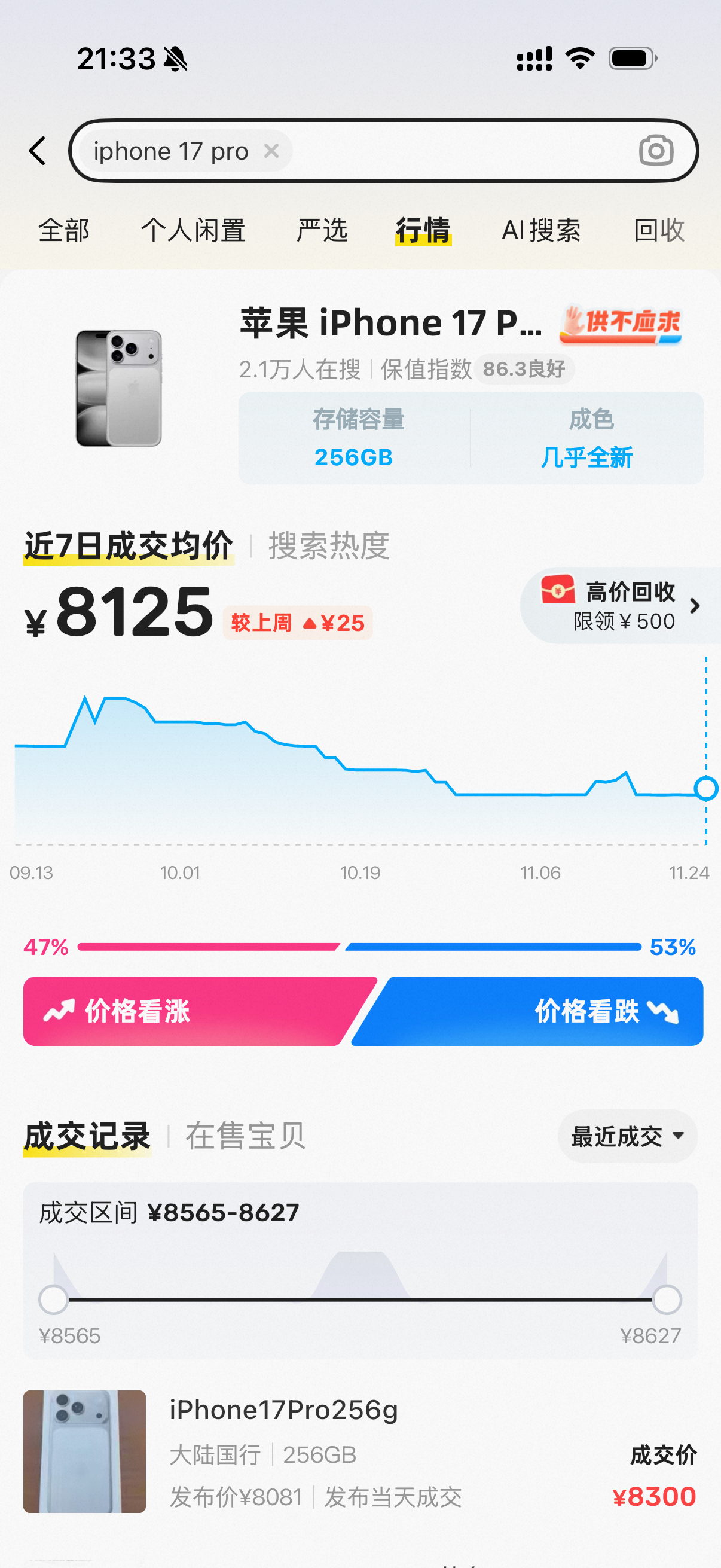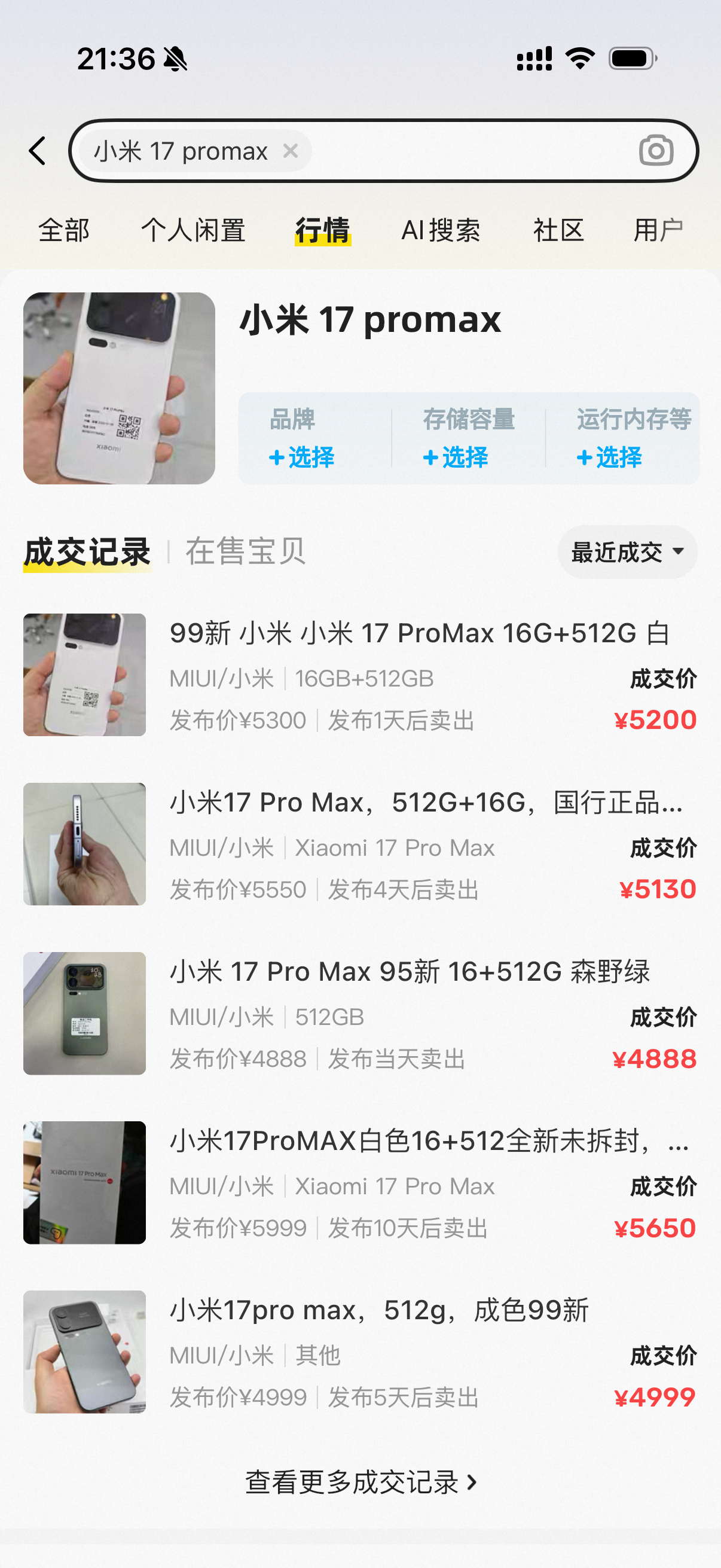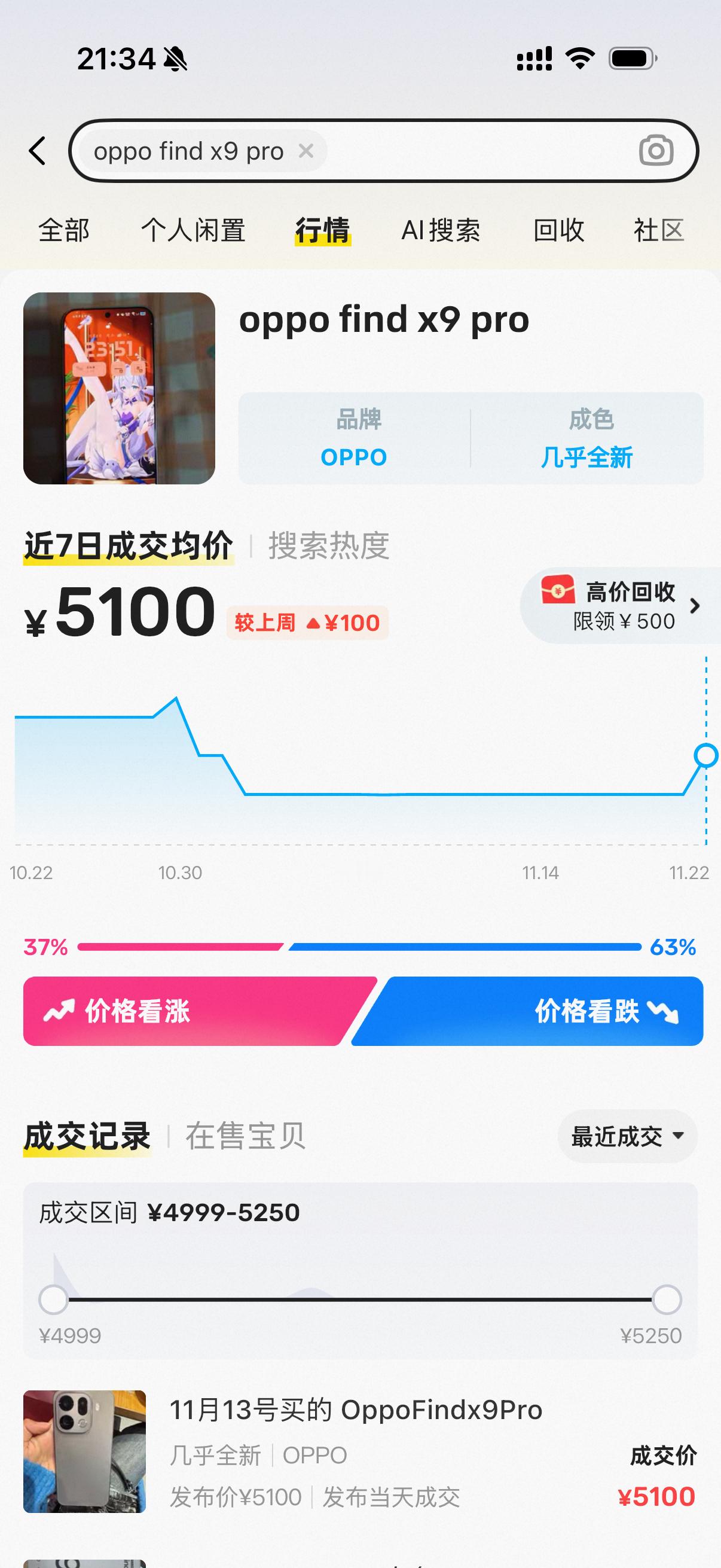 闲鱼这个行情做的挺不错的,大家在卖闲置时如果不清楚二手价格。可以利用闲鱼这个行情看一下最近交易的价格。这里面都是平台最近成交的价格,行情是取的平均数,这样你就可以对自己的闲置有一个大概的价格了解了。