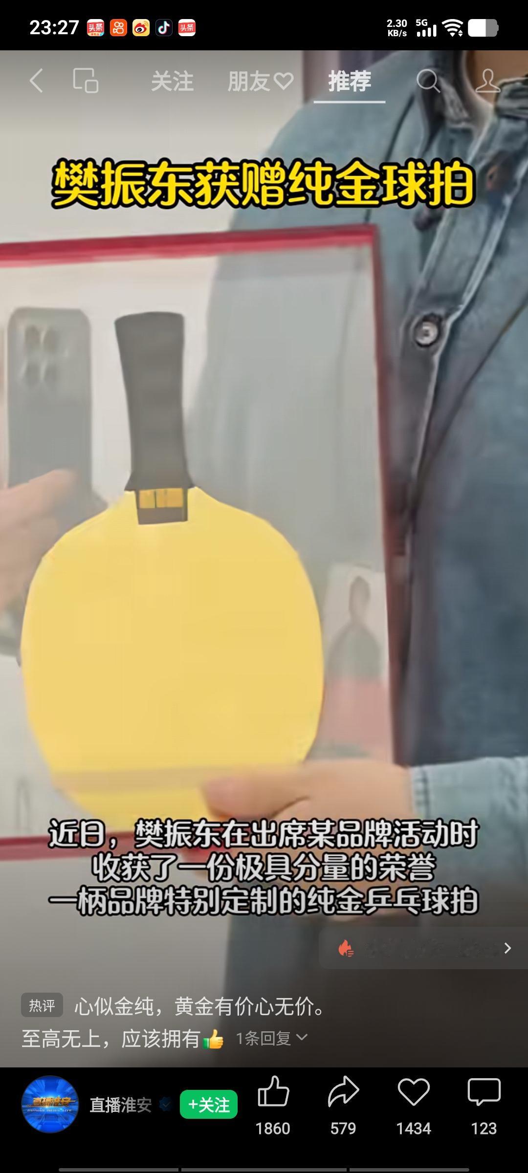 樊振东获赠纯金球拍,心情格外愉悦。今日,樊振东现身深圳,出席某品牌发布会。期间,