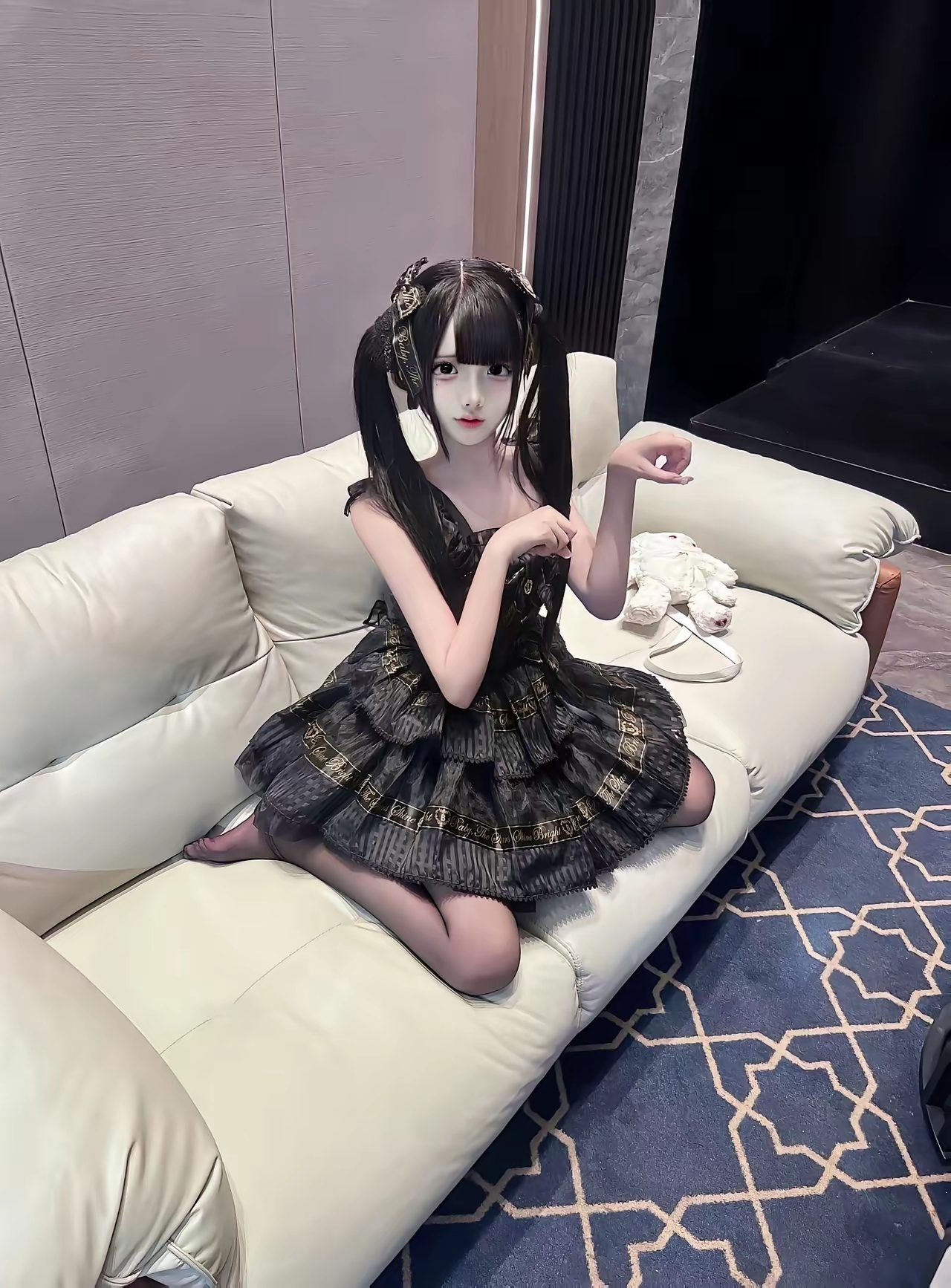 冷艳黑丝女郎,那气场真是绝了!就像倪妮在米兰看秀,一袭黑色亮片裙搭配网...