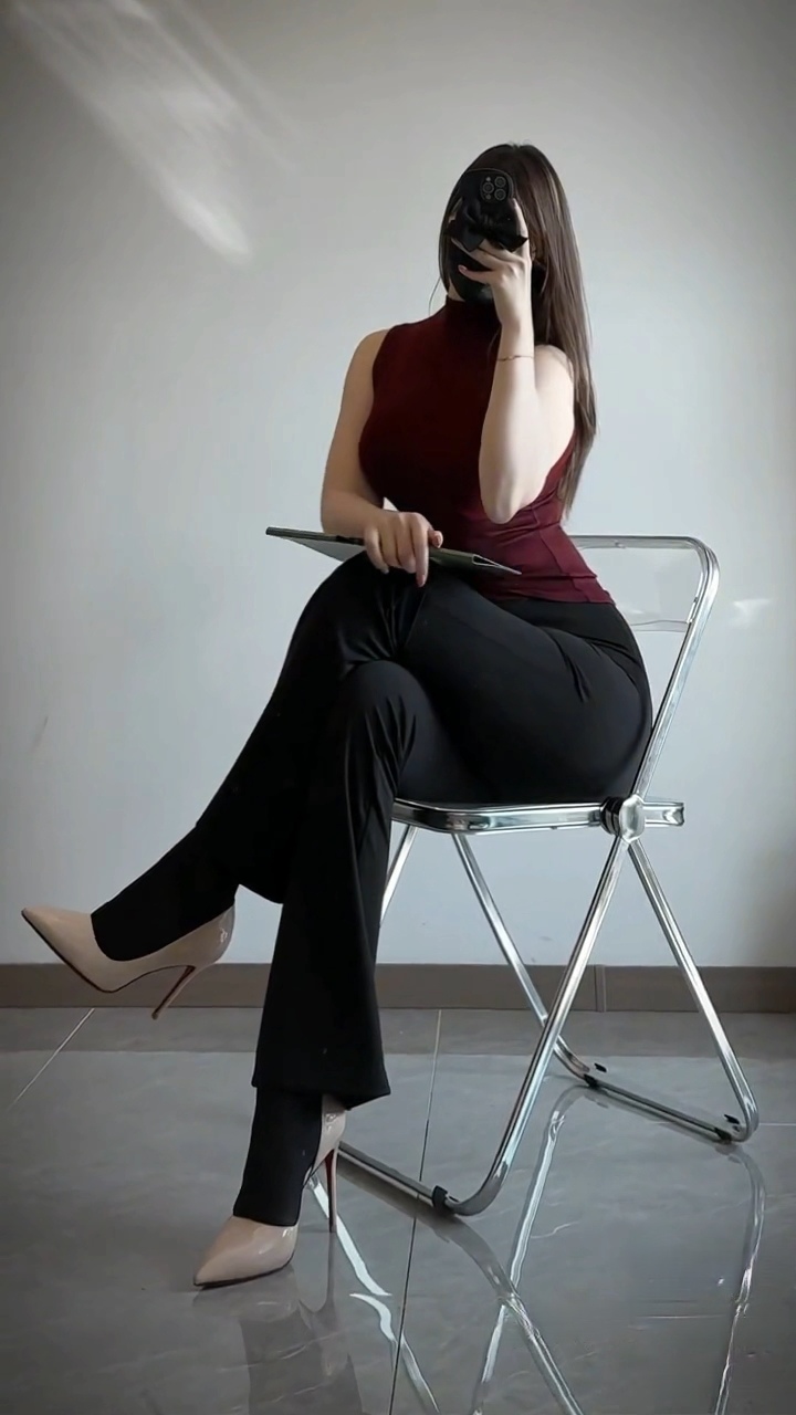 搭配黑色微喇裤,垂坠感恰好修饰腿型,裸色高跟鞋又悄然拉长比例,手中的平板让“职场感”更为自然。整体堪称“专业中蕴含精致”的典范,相较于刻板的通勤装,多了一份鲜活的女性魅力。职场知性穿搭 职场轻熟感穿搭 时尚穿搭