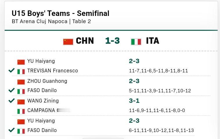 今天这是怎么了?秀才搬家全是书(输)啊! U15男团也被淘汰了,1:3输给了意大利。 4个团体项目,已经输了3个了。 回来得打屁屁了。