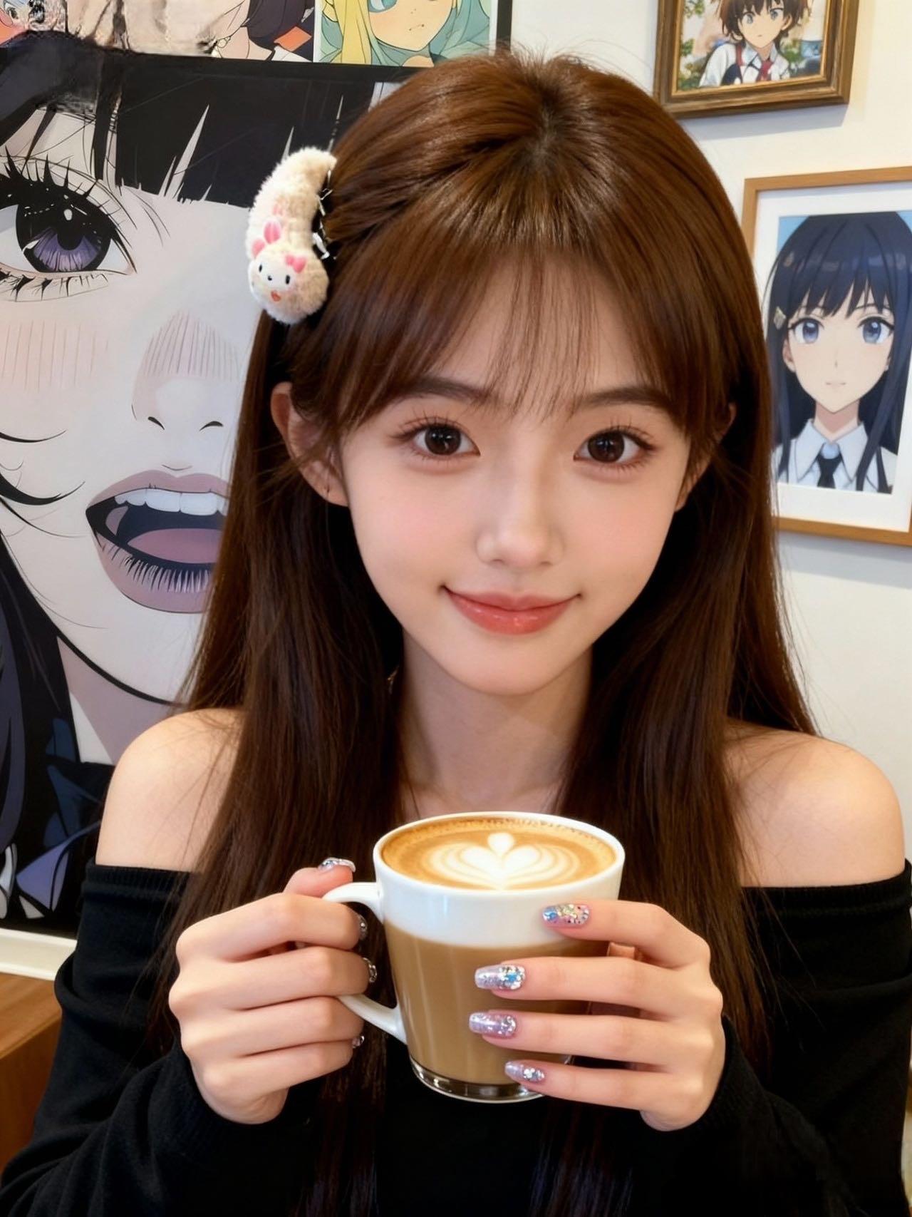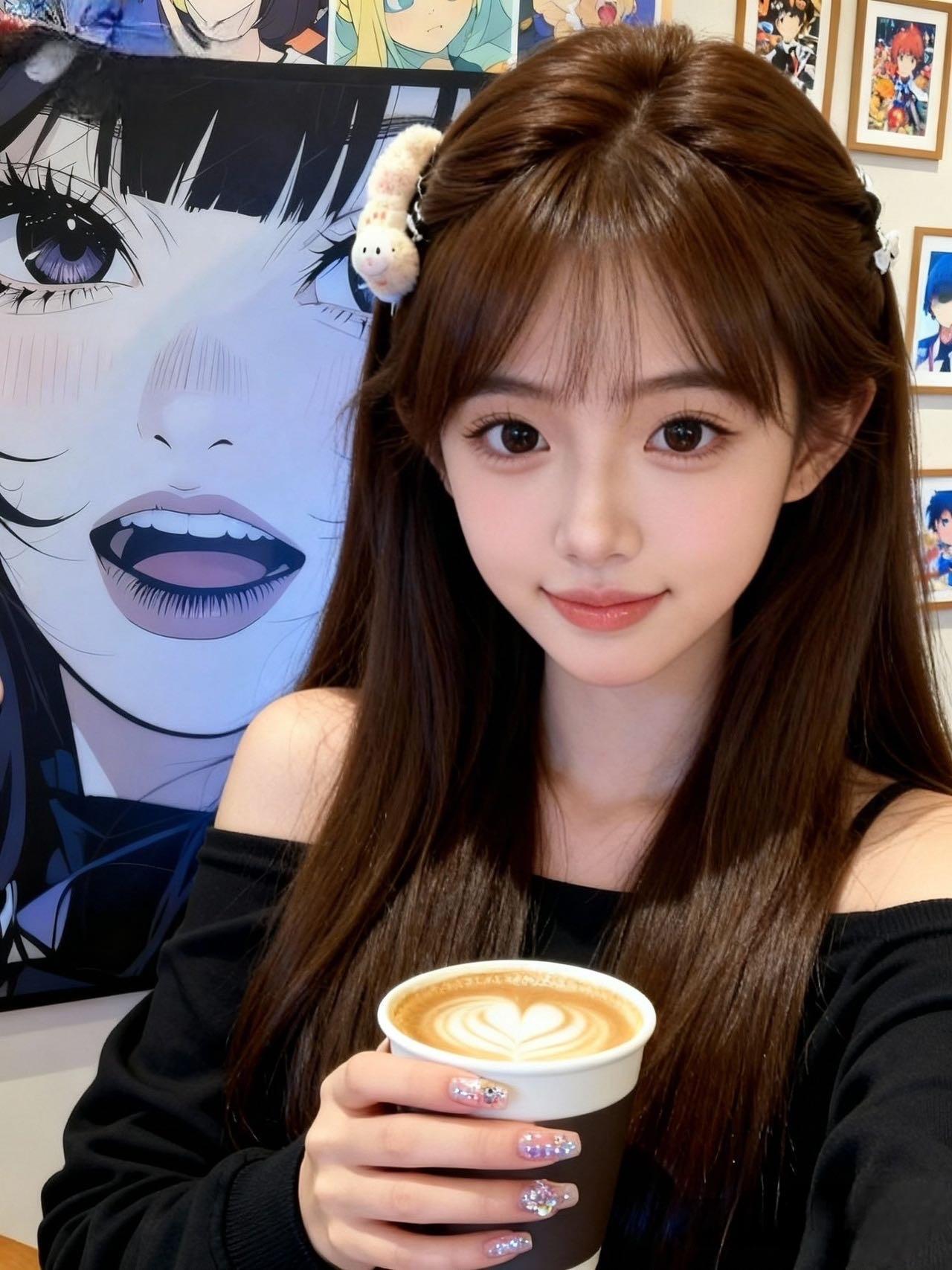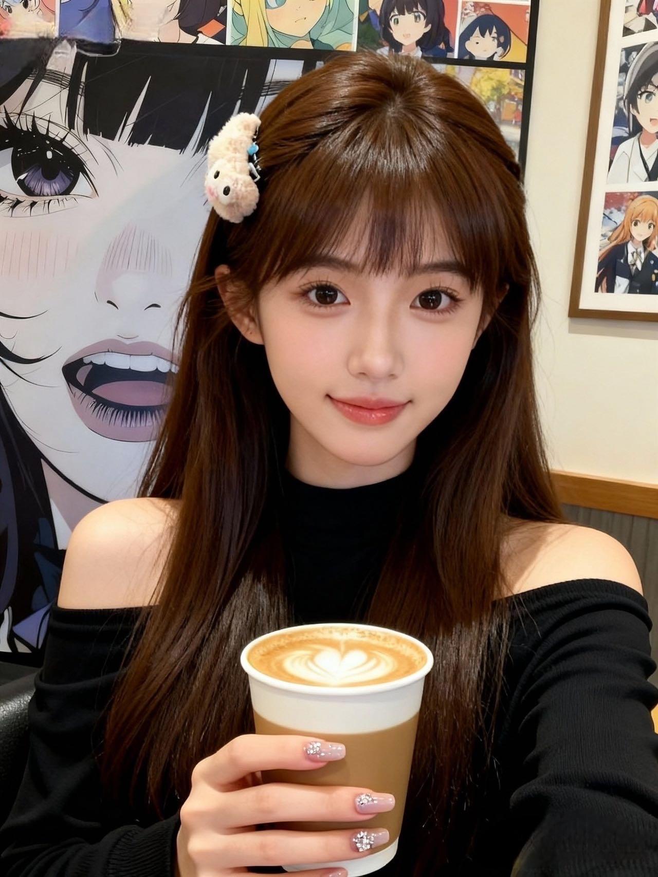 谁懂啊!今天这身“漫展咖啡店”适配度直接拉满了! 这件黑一字肩把氛围感焊在身上——露肩刚好露出锁骨,软乎乎的面料裹着身子,舒服得想原地瘫在沙发里~最心机的是头顶这个毛绒发夹!奶fufu的小兔几往头发上一夹,甜妹buff直接叠满🐰 连美甲都没放过!闪片+碎钻的款式,举咖啡杯的时候直接把灯光都拐来当背景板了✨身后的动漫海报一衬,感觉下一秒就要被二次元男主搭讪(不是)! 总结:这一身=甜妹浓度超标+舒适感拉满,主打一个“毫不费力赢很大”💅 一字肩辣妹上衣 泡泡袖露肩衬衫 高级感咖啡店 jk紫色系穿搭 甜美风咖啡店 一字肩辣妹上衣 紫色一字肩 高级感咖啡店 时尚漫展穿搭 暖色系咖啡店 美女人像群 高雅气质美女 美女欣赏图片