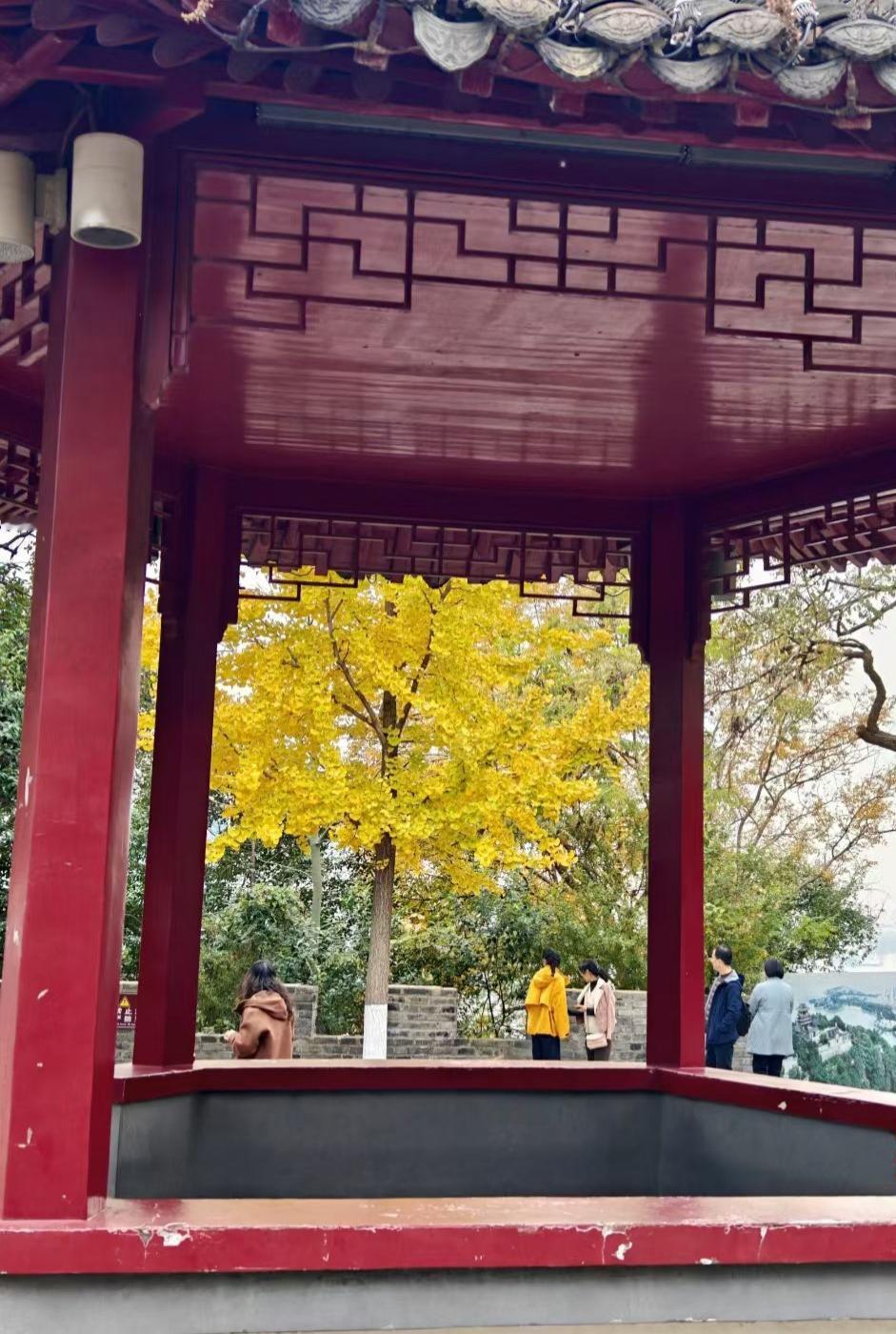 冬日生活随拍银杏把秋酿成金箔,垂落的柳丝还缠着半缕绿。石桥连着凉亭,行人踏碎光影