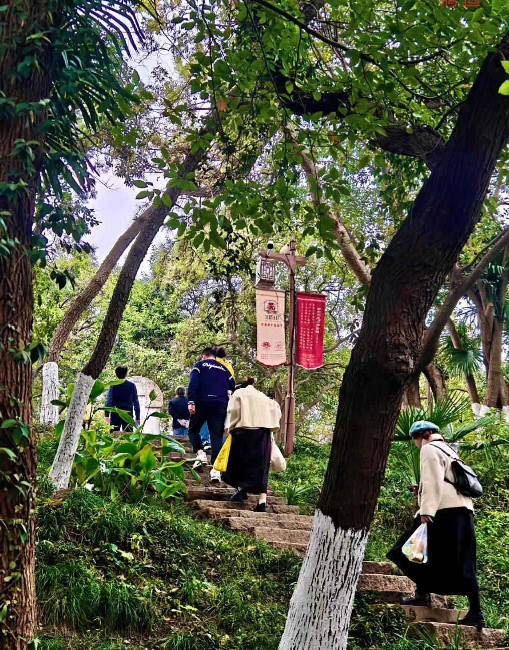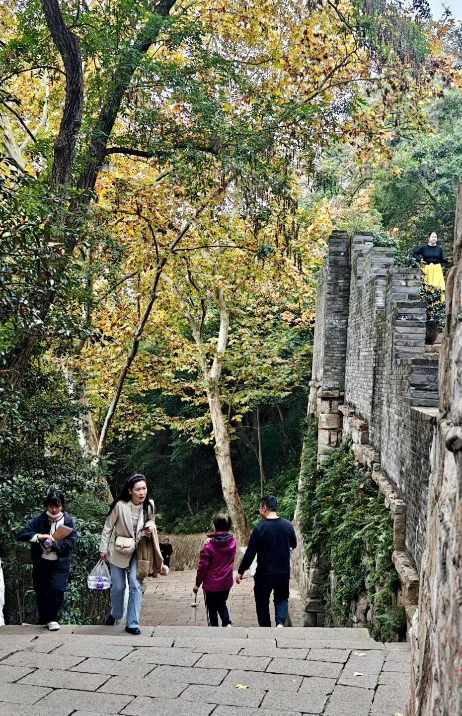 石阶浸着草木香,枝桠把天光滤得温软。行人肩头落着碎叶,连脚步都沾了几分秋的松弛。