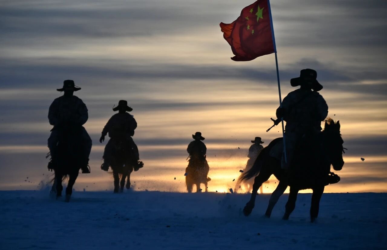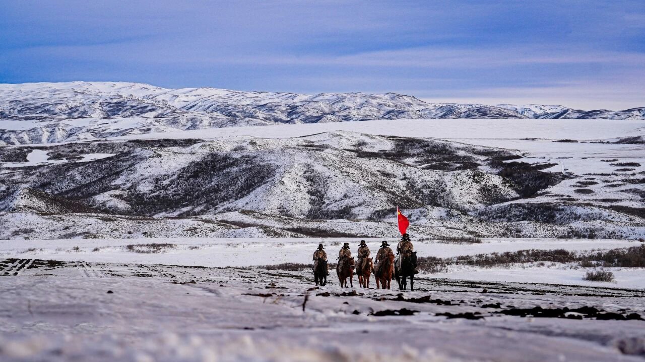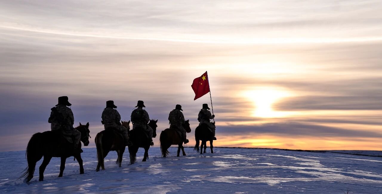 年底了!还没实现完全机械化的中国陆军新疆军区某边防团官兵骑马开展巡逻任务,他们高举着鲜艳的五星红旗用忠诚和担当捍卫祖国边境线。
