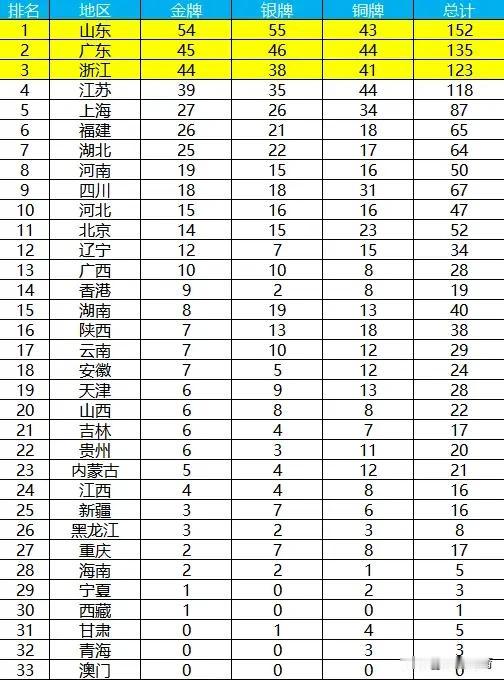 全运会结束!广东队即使占据天时地利人和,最终奖牌榜也没能超过山东,我想其中原因离不开这两点。 1、山东是真正的体育强省,算上本届全运会,山东已经连续五届全运会奖牌榜第一。这在整个全运会历史,也是独一无二的存在,证明山东是体育强省,而且远远强于其他地区,不是那么容易被赶超的。 2、广东队投入虽大,但是投入重点放在篮球项目。本届全运会广东队在篮球领域夺金极多,男子成年、U22、U18全部夺金。还有女子成年组夺金。就连主教练杜峰也表示,这是历史第一次。 广东明显把争夺金牌的重心,放在了如篮球、跳水、田径等项目中,而无法做到全方位统治。广东全运会男篮 全运会山东金牌