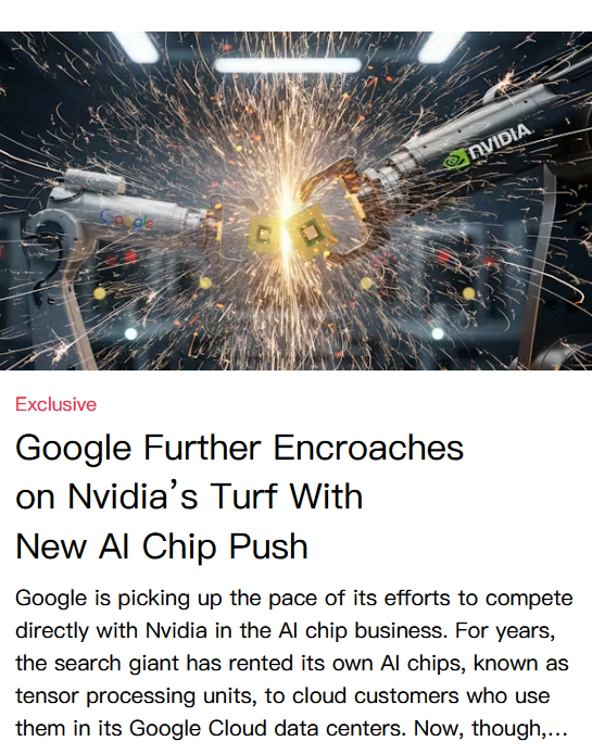 谷歌正大幅加紧在AI芯片竞赛中与英伟达展开竞争,而Meta正成为其潜在的数十亿美元客户。多年来,谷歌一直将其定制TPU限制在自家云数据中心内使用,并对外出租算力。但据The Information报道,谷歌现在正向客户推销这些芯片,这标志着其战略发生了重大转变。目前主要依赖英伟达的Meta据悉正在洽谈斥资数十亿美元,计划从明年起开始租借谷歌TPU算力,2027年起在其数据中心集成谷歌的TPU。