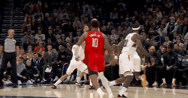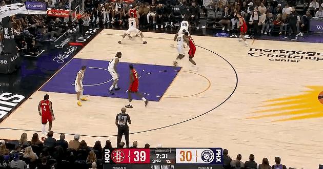 起飞!小史密斯强势完成单手隔扣! 在今天NBA常规赛火箭对阵太阳的第二节比赛中,小史密斯中路内切接申京妙传后高高跃起迎着理查兹完成一记精彩的单手劈扣! 虽然今天杜兰特因故缺席,但火箭这帮年轻人各个能打,一点不虚太阳!