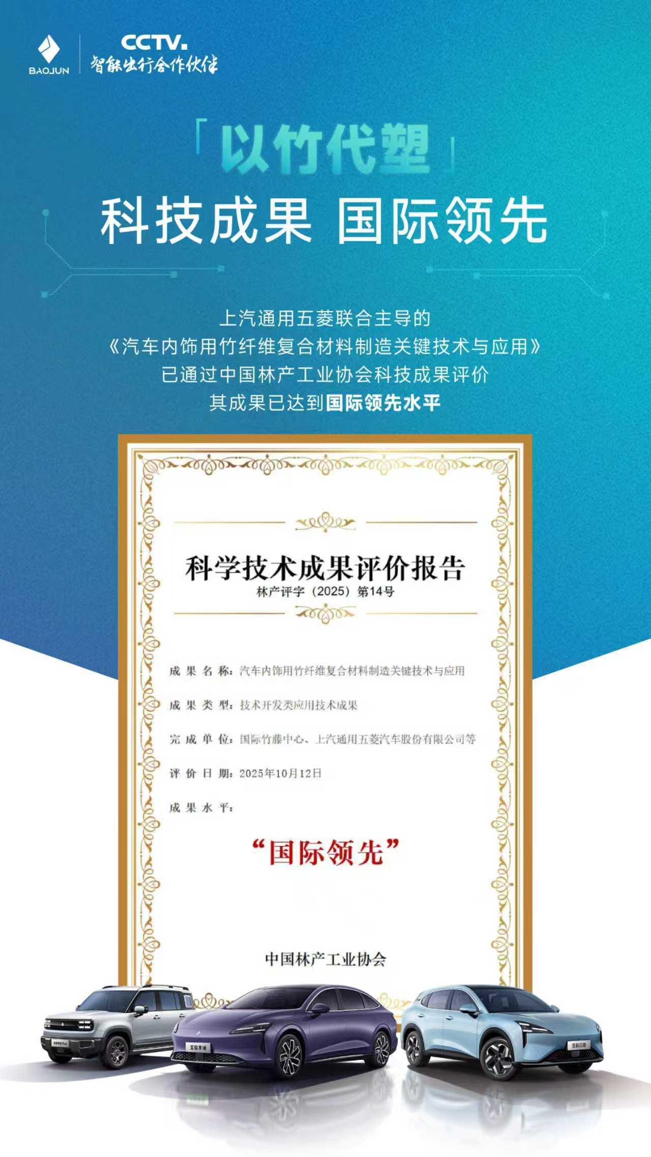 “以竹代塑”国际领先!上汽通用五菱率先实现竹纤维真正“上车”。 由上汽通用五菱联合主导的《汽车内饰用竹纤维复合材料制造关键技术与应用》,已通过中国林产工业协会科技成果评价,其成果已达到国际领先水平!