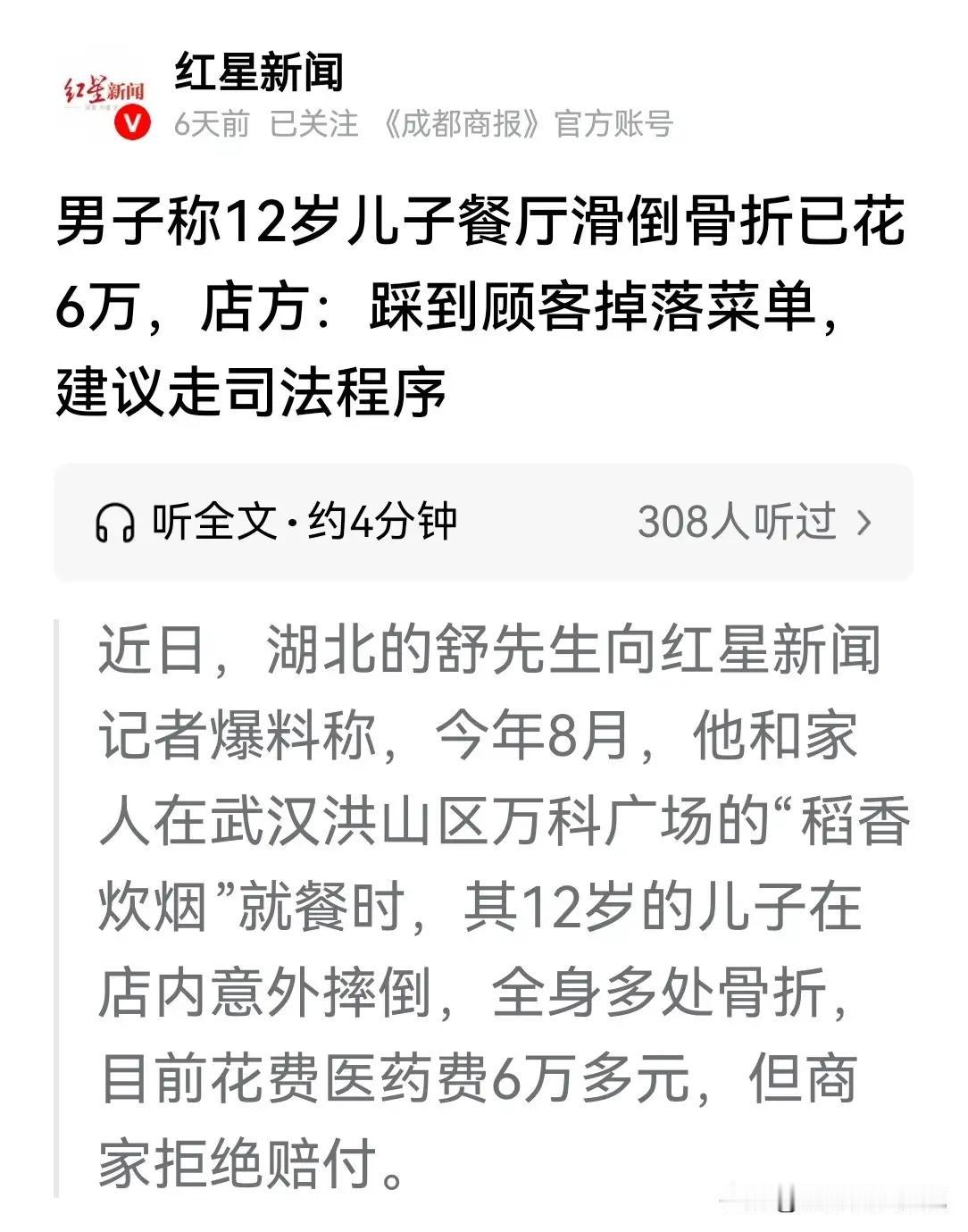 在繁忙的都市生活中,我们常常被琐事缠绕,忽略了身边最重要的东西——健康。湖北武汉的一幕,让人不禁扼腕叹息,也让我们重新审视生命的脆弱与宝贵。 那天,男子带着一家人在饭店用餐,欢声笑语中,意外发生了。一个无意中丢掉的菜单,成了命运的转折点。12岁的儿子踩到菜单滑倒,摔得全身多处骨折,痛苦难忍。医药费高达六万余元,父亲心如刀绞,却迎来了令人心碎的“冷漠”——饭店方竟然一分钱也不愿承担责任。 令人心寒的是,店方竟然以“旧伤”为由,试图推卸责任。声称:孩子之前的旧伤影响了此次摔伤的认定,还要父亲提供“证据”,赔偿额度还被限制在一万元以内。这种“推诿扯皮”的做法,令人愤怒,更令人心碎。孩子的未来,因一场意外蒙上阴影,父母的心,也被无情的现实刺痛。 这件事,折射出一个普遍的社会问题:我们是否真正关心过身边的健康?在追求物质的同时,是否忽略了身体的警钟?人生如行路,健康是最重要的底线。没有了健康,一切都变得毫无意义。我们常说“身体是革命的本钱”,但有多少人在日常生活中真正用心呵护? 其实,生命的每一次跌倒,都是成长的契机。我们要感恩生命的馈赠,懂得珍惜当下的每一刻。正如古人云:“身心调养,修身养性。”只有身心双调,才能走得更远,活得更精彩。每一次意外,都是一次警醒,让我们明白:健康无价,生命宝贵。 朋友们,让我们从这起事件中汲取教训。关爱自己,关爱家人,关注健康,远离隐患。人生如修行,唯有健康,才能行稳致远。愿每个人都能以感恩的心,珍惜生命中的每一份平安与幸福。让我们携手努力,共筑一个关注健康、尊重生命的美好社会。 生命短暂,健康长存。请记住,生命的意义在于善待自己,善待他人。让我们从现在开始,用行动守护健康,用爱传递温暖。因为,只有身体健康,才能真正享受人生的每一份精彩!
