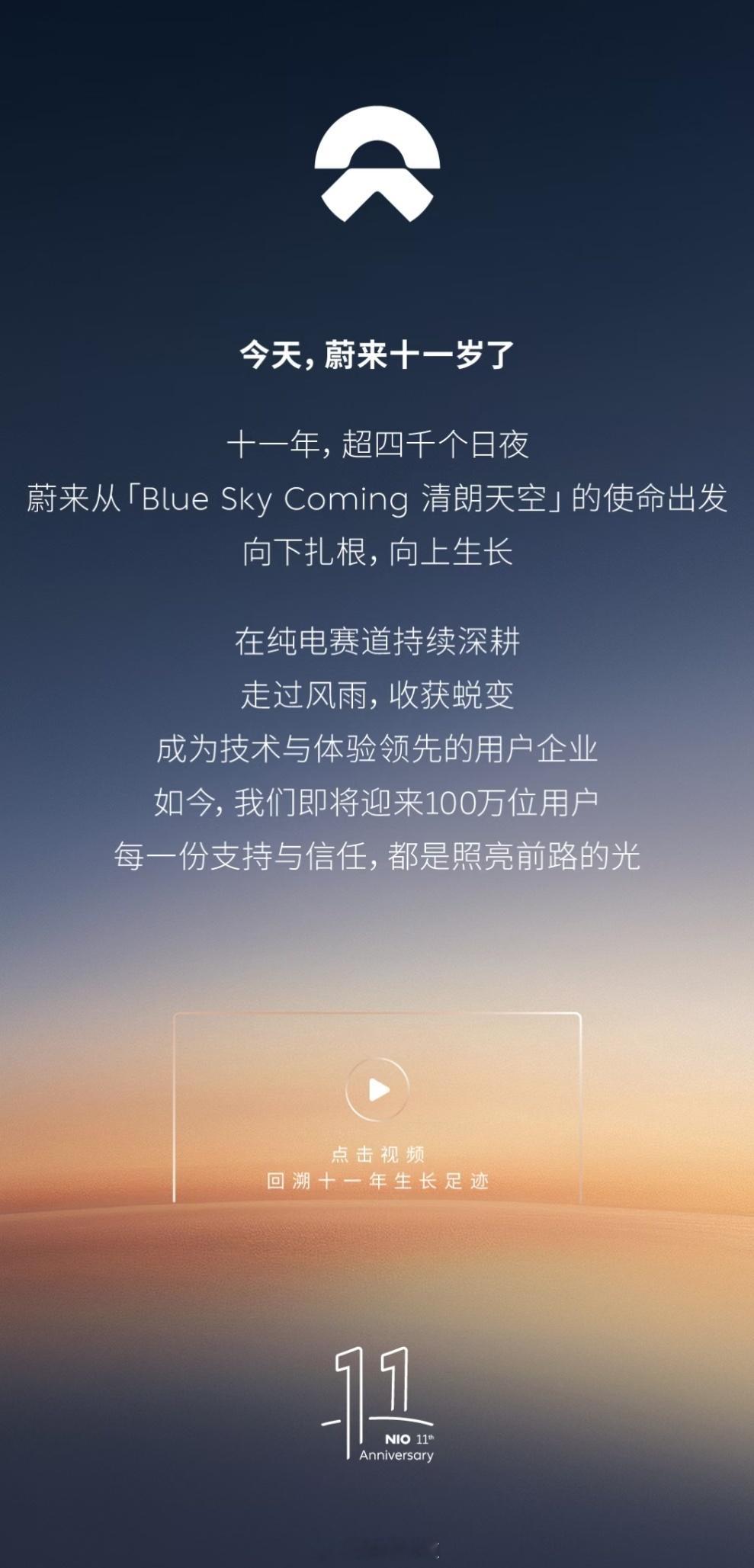 蔚来这就已经走过十一个年头了,今年蔚来公司的第100万台量产车也会下线。最难得的