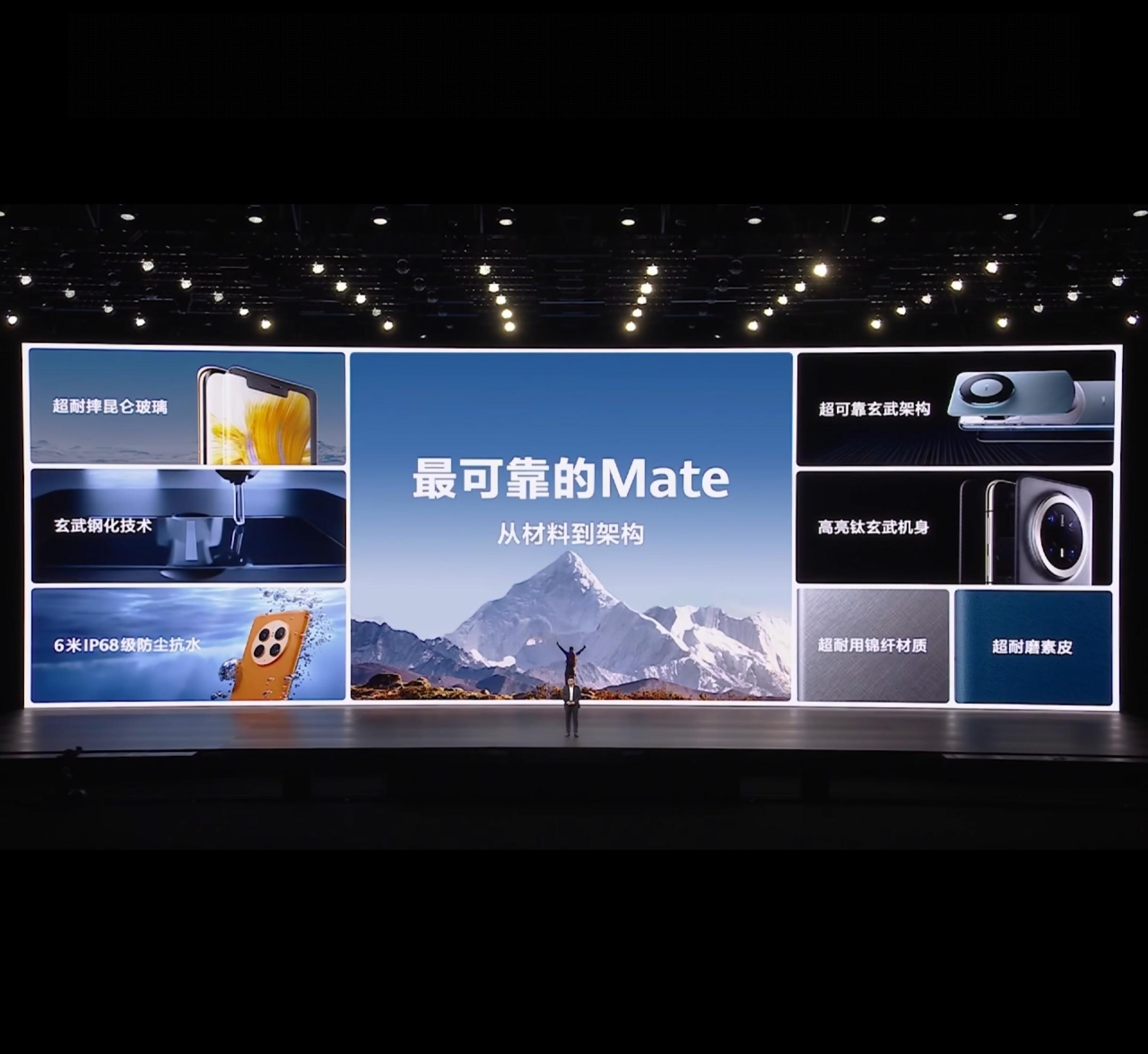 华为 Mate 80 正式亮相了全金属玄武架构,正面采用第二代昆仑玻璃,IP68、IP69 防尘防水等级。背部的圆环是给无线充电预留的区域。全系 3D ToF 人脸识别。