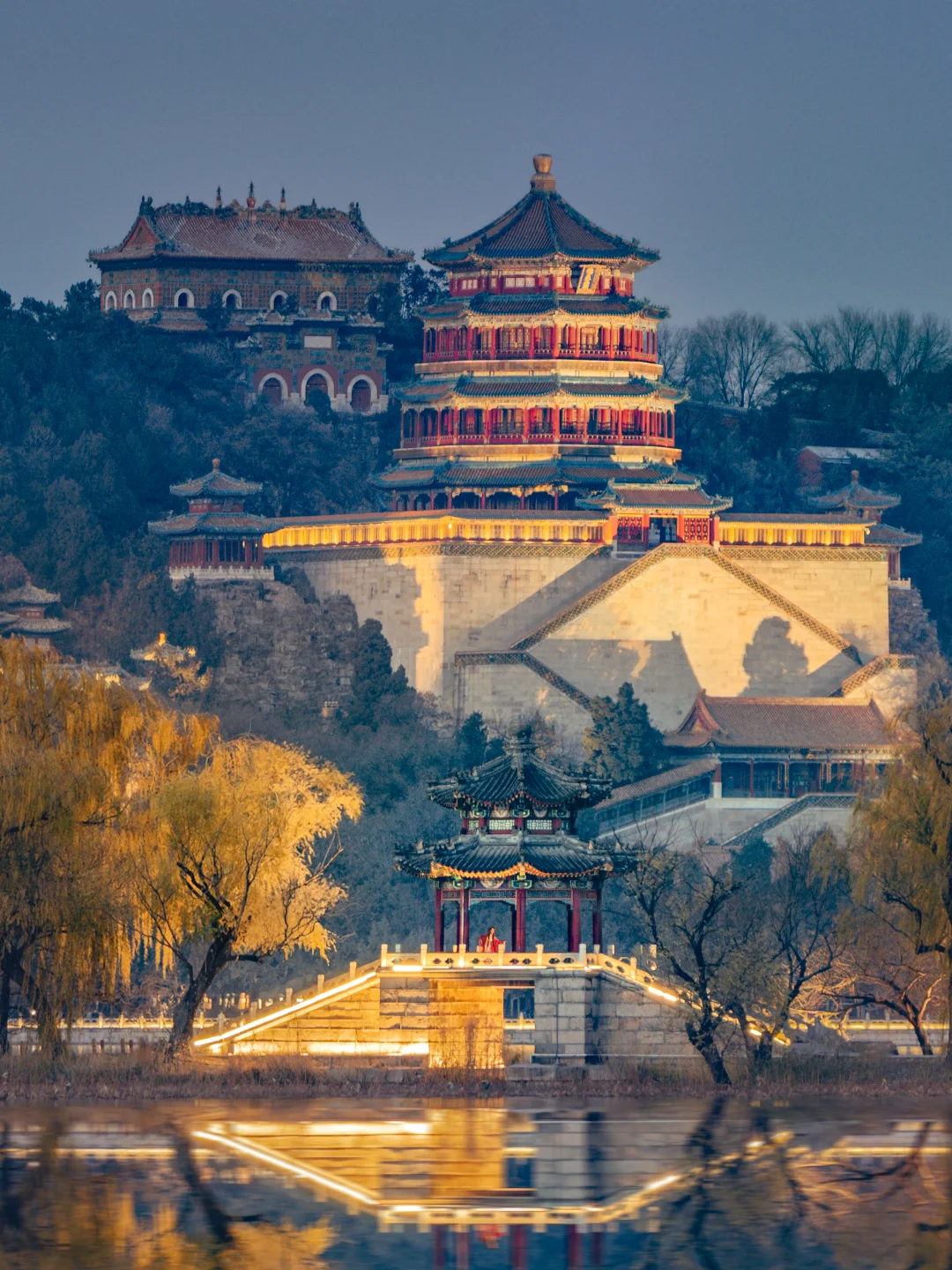 大家好,我是默存, 一个致力于给世界带来美好的摄影爱好者, 今天给大家分享的是佛香阁亮灯。 📷:sonya7m4+200600 📍:颐和园畅观堂 一年一度金光穿洞又开始,不过人依旧多得给力,实在挤不进去的话建议还是从西门进,来畅观堂附近拍颐和园亮灯。尤其这个机位,佛香阁和豳风桥都亮起来后,等到蓝调时刻,会非常有意境,推荐大家都来打卡。镜头有200端就够用。佛香阁周五周六亮灯。