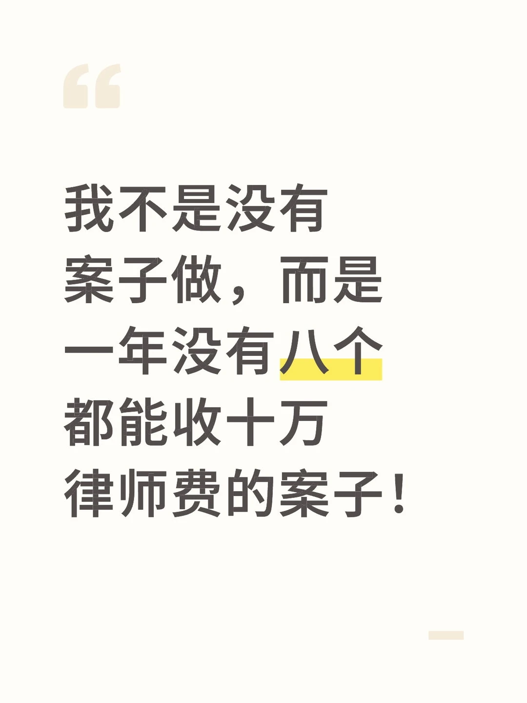 我不是没有案子做,而是一年没有八个都能收十万律师费的案子!