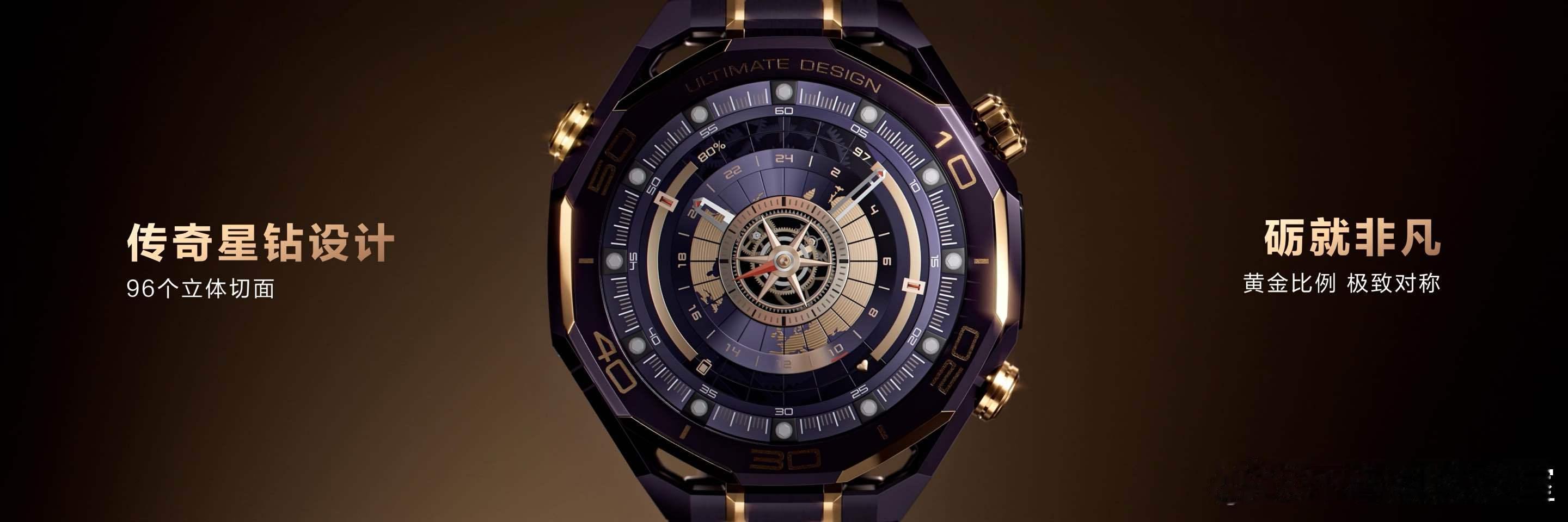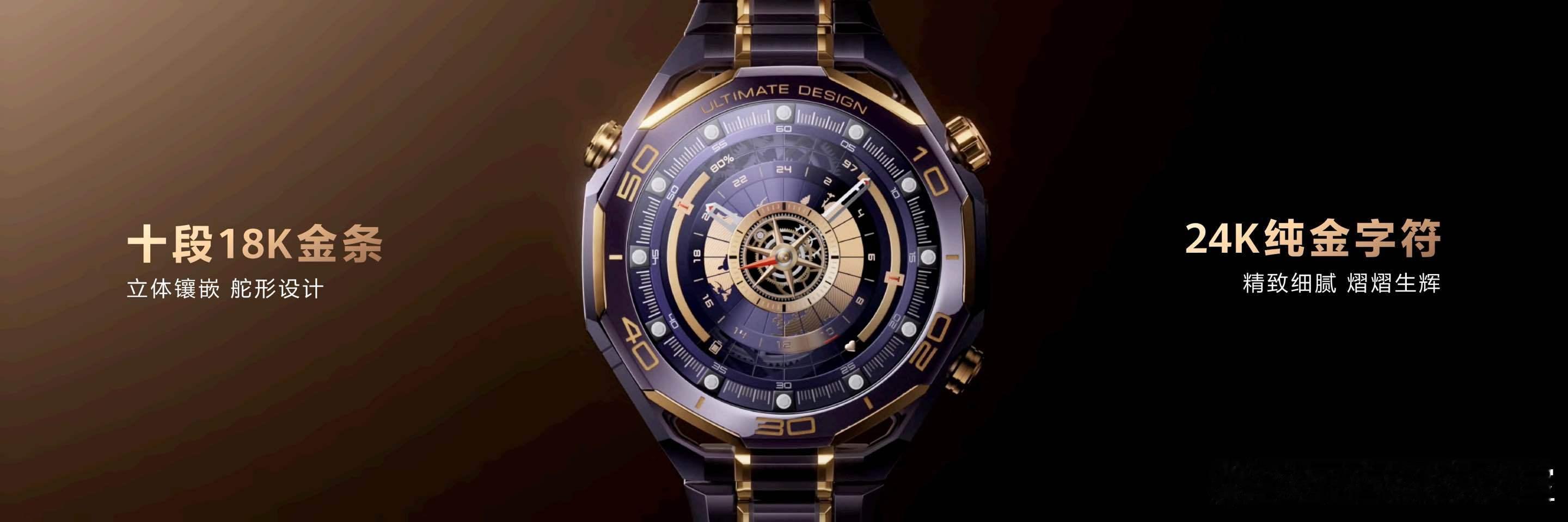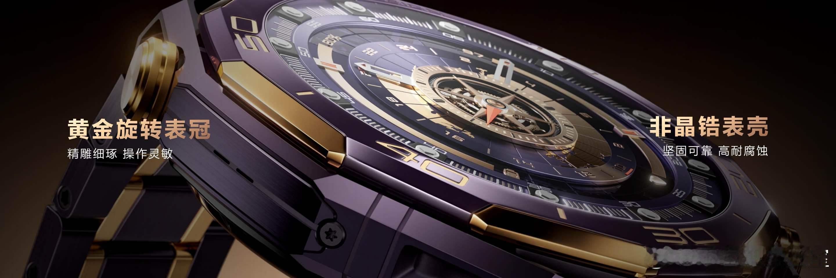 新一代华为非凡大师紫金款手表,整机手工镶嵌10段18K黄金,黄金旋转表冠,搭配业界首创复合稀土紫色陶瓷表圈,呈现低调奢华的紫金配色,加以钛合金紫色间金表带和蓝宝石玻璃表镜,高端材质砺就非凡基底。华为紫金表展现了低调奢华的尊贵气质,融合了时代尖端科技,既是功能强大的智能设备,也是彰显身份的腕间名片。新一代HUAWEI WATCH ULTIMATE DESIGN 非凡大师紫金款,将智能手表的尖端科技与传统经典腕表美学设计融为一体。 ,新品机身以手工镶嵌10段18K黄金,业界首创复合稀土紫色陶瓷,紫金相彰诠释高贵非凡格调。其强悍内核集成eSIM先锋通信、北斗卫星语音消息、150米深潜能力与海豚声呐通信等尖端技术,以及 X-TAP智感窗健康监测、星闪™连接智慧控车等丰富功能,为高端人士打造出一款以探索精神致敬非凡人生的超高端智能腕表。