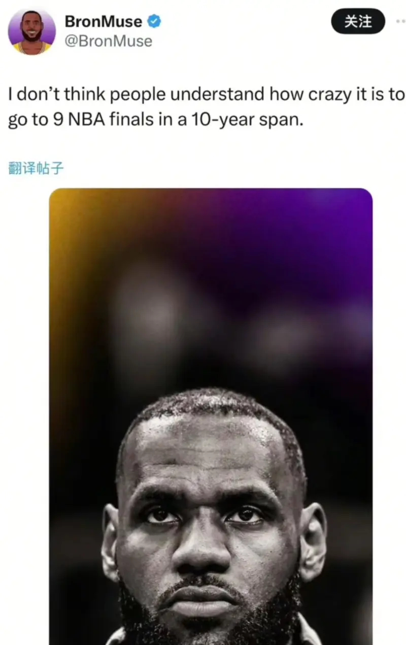 美自媒体晒图:可能大部分人还不明白10年内9次打入总决赛有多疯狂,詹姆斯做到了统治季后赛!