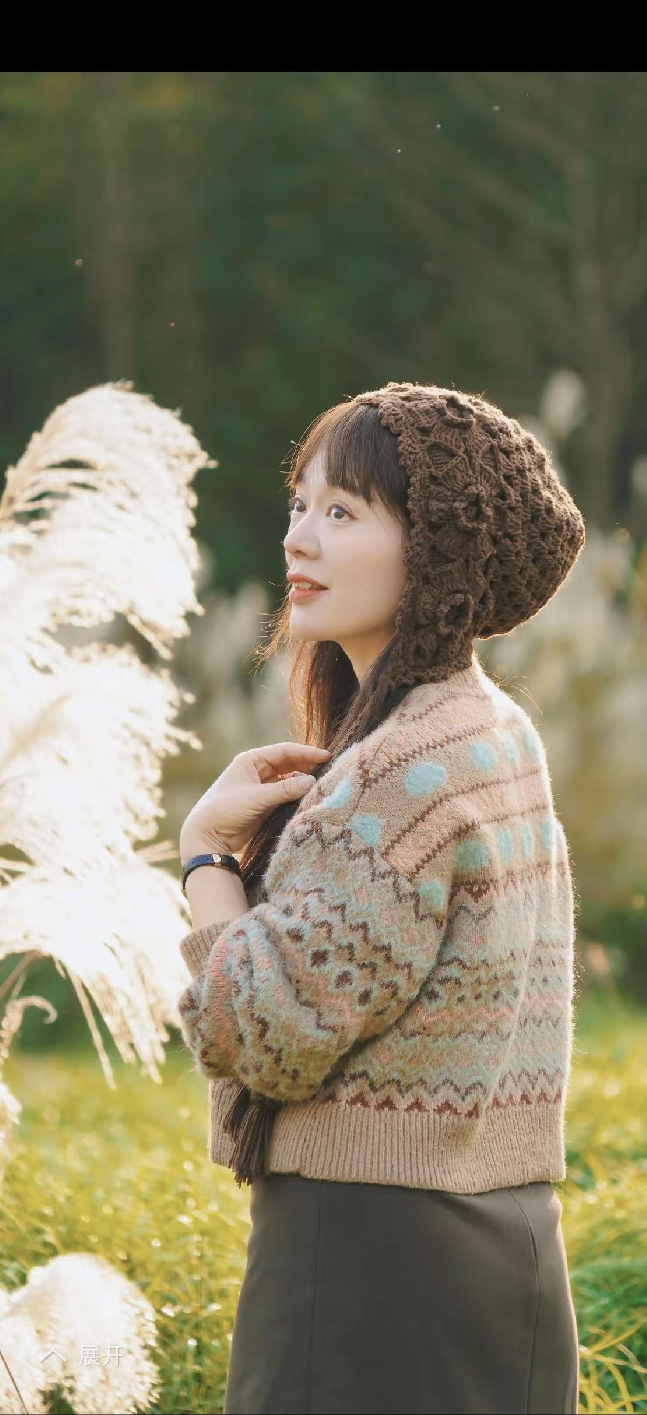 秋日暖阳下,格子围巾与棕色裙摆的完美搭配,尽显优雅与温暖。