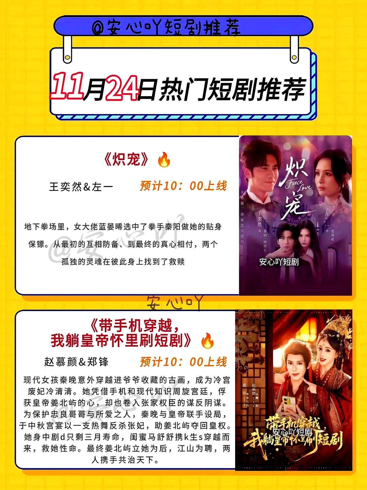 各位剧粉,11月24号这波新短剧也太能打了!简直是把“电子榨菜”直接喂到嘴边。 甜宠爱好者直接冲《炽宠》和《霍先生他每天都在求名分》。想来点刺激的,别错过《猎物法则》和硬核的《犟骨》。 我是真服了这几个剧名:《带手机穿越我躺皇帝怀里刷短剧》、《穷学霸强吻校草,他真香了》,这剧情简直藏都藏不住啊! 还有那个《别惹那个叼奶瓶的,她超凶》,光听名字就感觉好上头。 这么多选择,你最看好哪部能爆?评论区聊聊!