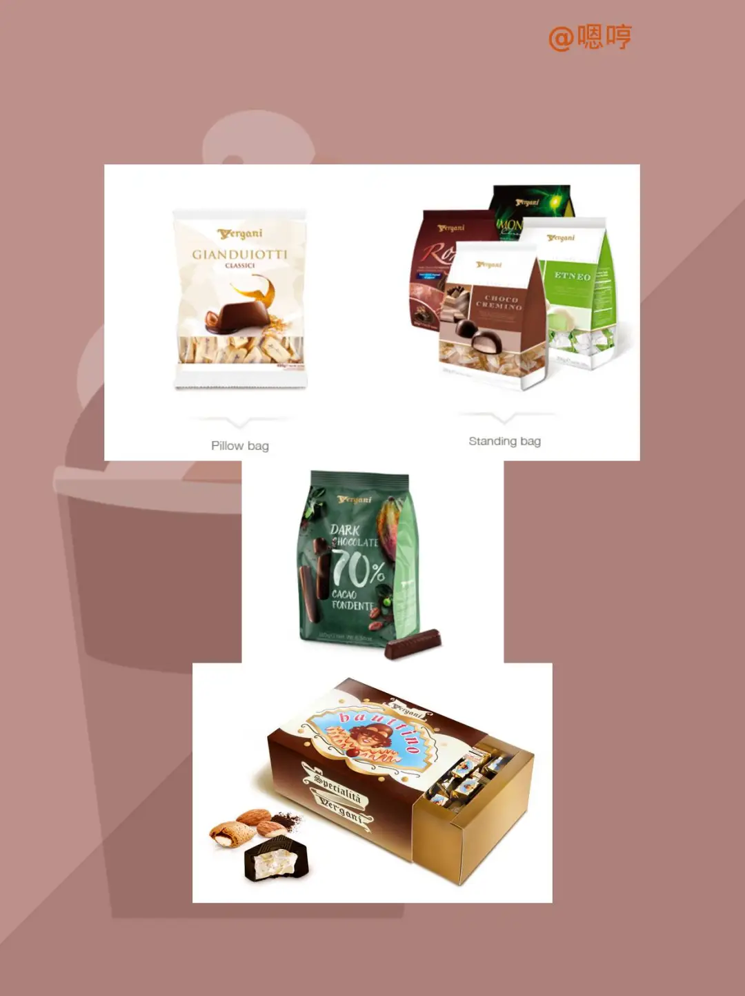 Vergani 不仅保留了经典配方,也不断创新,推出巧克力夹心糖、夹心巧克力、果仁巧克力以及节日甜点等多样产品,远销欧洲、美洲及亚洲市场。