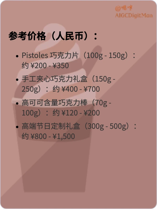 Pistoles 巧克力片(100g - 150g):约 ¥200 - ¥350