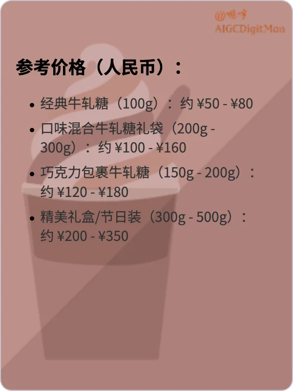 经典牛轧糖(100g):约 ¥50 - ¥80