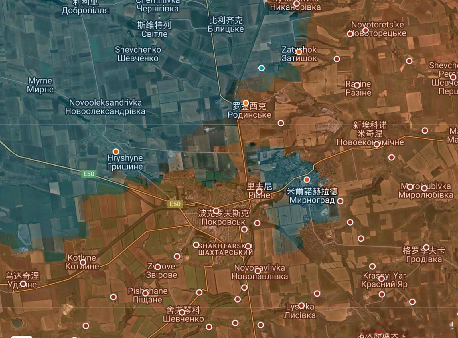 俄军继续向波克罗夫斯克东部推进,完全控制了科霍日基纳郊区及周边战壕与毗邻运动区。