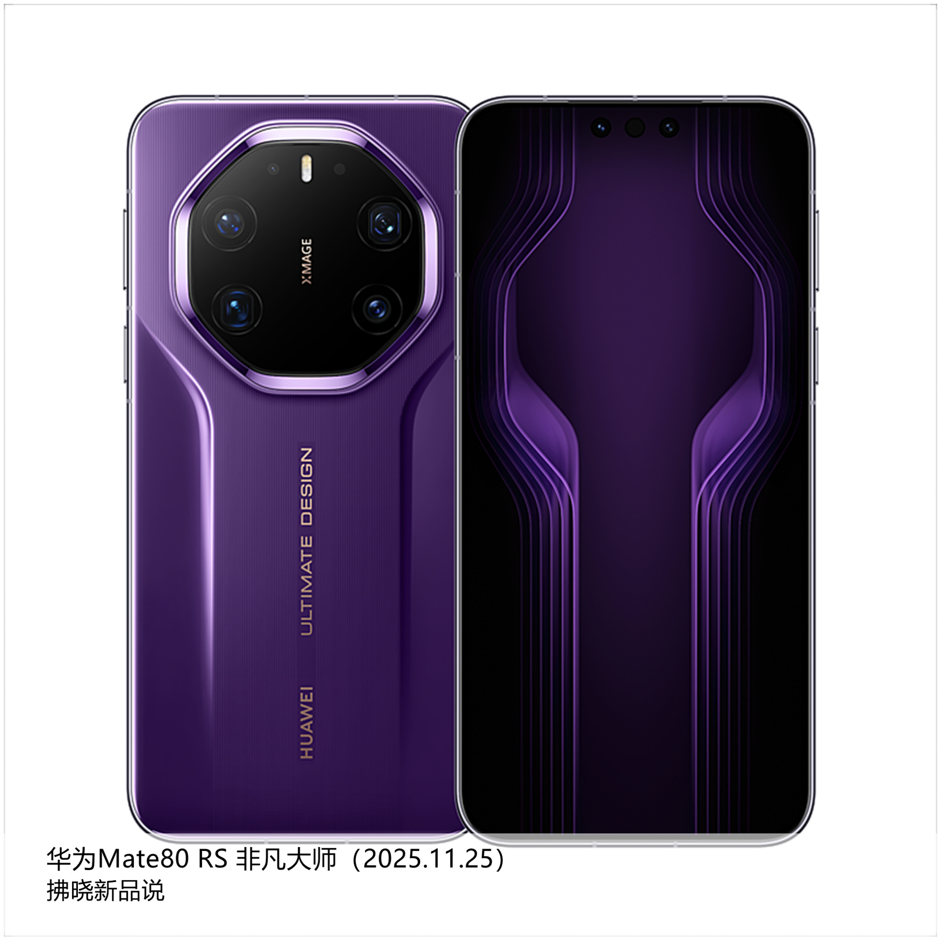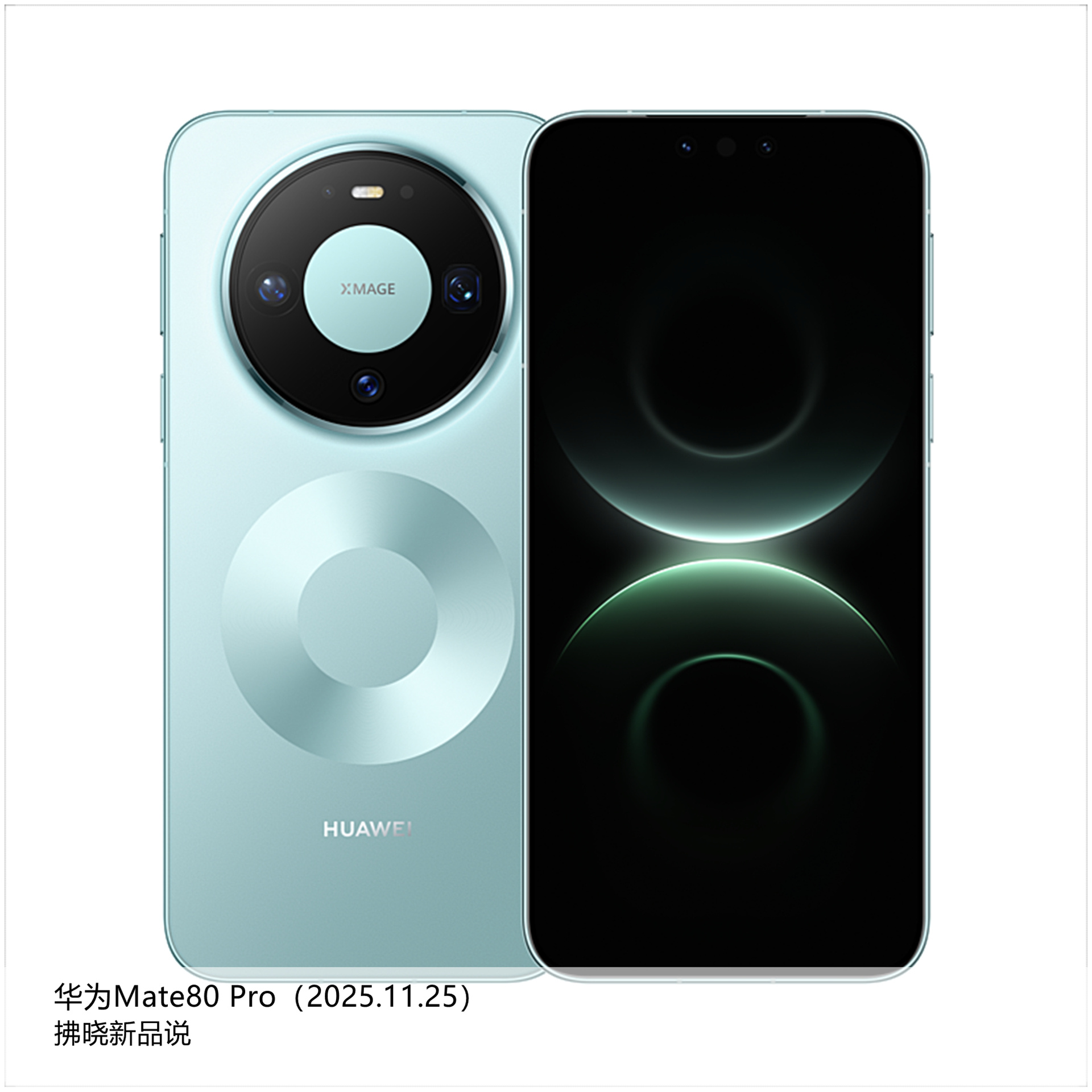 【拂晓新品说】华为Mate 80系列:(1)华为Mate 80:- 发布时间:2025年11月25日;- 处理器:麒麟9020;- 存储:?;- 屏幕:6.75英寸OLED居中打孔屏、2832×1280分辨率、120Hz屏幕刷新率+300Hz触控采样率、1440Hz PWM调光、460 PPI、第二代昆仑玻璃;- 影像:后置5000万像素主摄(OIS、f/1.4~f/4.0可变光圈)+4000万像素超广角镜头(f/2.2)+1200万像素潜望式长焦镜头(OIS、5.5倍光学变焦、f/3.4)+第二代红枫原色摄像头;前置1300万像素镜头(f/2.0)+3D深感摄像头(支持3D ToF人脸识别);- 续航:5750mAh电池+66W有线充电+50W无线充电;- 其他:北斗卫星消息,侧边指纹识别、NFC、红外遥控、立体声扬声器、IP68 & IP69;预装HarmonyOS 6.0操作系统,机身厚度约7.95mm,净重约217g;始发“曜石黑、雪域白、晨曦金、云杉绿”四个版本,全系4699起(12GB+256GB/12GB+512GB/16GB+512GB)。(2)华为Mate 80 Pro:相比标准版,Pro版处理器升级为麒麟9030,16GB版升级为麒麟9030 Pro;潜望长焦镜头升级为4800万像素超聚光微距长焦摄像头(OIS、4倍光学变焦、f/2.1);有线充电提升至100W;北斗卫星消息+天通卫星通信;净重约219g;全系5999起(12GB+256GB/12GB+512GB/16GB+512GB/16GB+1TB)。(3)华为Mate 80 Pro Max:- 发布时间:2025年11月25日;- 处理器:麒麟9030 Pro;- 存储:?;- 屏幕:6.9英寸双层OLED居中打孔屏、2848×1320分辨率、120Hz屏幕刷新率+300Hz触控采样率、1440Hz PWM调光、8000nits峰值亮度、455 PPI、第二代昆仑玻璃;- 影像:后置5000万像素主摄(OIS、f/1.4~f/4.0可变光圈)+4000万像素超广角镜头(f/2.2)+5000万像素超聚光微距长焦镜头(OIS、f/2.1)+5000万像素长焦镜头(OIS、6.2倍光学变焦、f/3.2)+第二代红枫原色摄像头;前置1300万像素镜头(f/2.0)+3D深感摄像头(支持3D ToF人脸识别);- 续航:6000mAh电池+100W有线充电+80W无线充电;- 其他:北斗卫星消息+天通卫星通信,侧边指纹识别、NFC、红外遥控、立体声扬声器、IP68 & IP69;预装HarmonyOS 6.0操作系统,机身厚度约8.25mm,净重约239g;始发“极夜黑、极地银、极昼金、极光青”四个版本,全系7999起(16GB+512GB/16GB+1TB)。(4)华为Mate 80 RS 非凡大师:外观更新,核心配置与Pro Mas版基本相同,屏幕升级为BT.2020超广色域,正面采用第三代玄武钢化昆仑玻璃(背面为二代昆仑玻璃);净重约249g;始发“玄黑、皓白、槿紫”三个版本,全系11999起(20GB+512GB/20GB+1TB)。★注:相关数据源于网络,最终以官方信息为准。