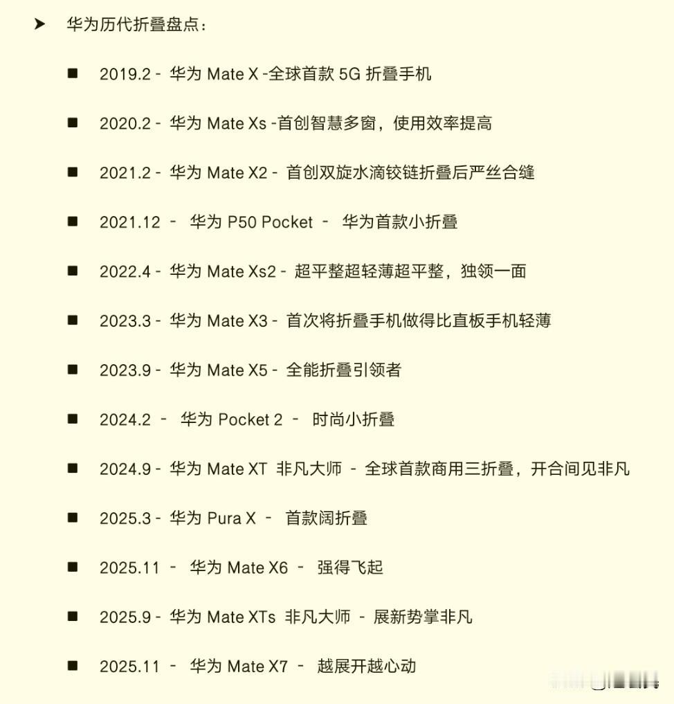 华为七年发布十余款折叠屏,连续六年领跑折叠屏市场。 先抛出一个结论:国产手机在折叠屏手机赛道,在全球范围是绝对领先的地位。 而其中,尤其以华为折叠屏,领先中的领先。 11月25日,华为Mate X7正式发布,这是一款全新折叠旗舰。 影像方面,搭载第二代红枫原色摄像头,折叠机最强感光主摄和长焦。 搭载鸿蒙大屏AI智能体,让大折叠的广阔屏幕,真正承载起更智能、更便捷的全场景生活。 华为7年发布多款折叠屏手机,在该赛道处于绝对的统治地位。而反观另一个手机巨头——苹果。苹果做折叠屏手机的传闻已经传很多年了,为什么一直没有推出来呢?大概率是有很多还没克服的困难。 国产的折叠屏都是苹果折叠屏手机的老师。 从折叠屏手机这个赛道,一叶知秋,可以看出来苹果手机正在跌落神坛,说明苹果的创新力在下滑。 在过去 20 年,苹果发布了多款改变行业格局的产品:2001 年的 iPod、2007 年的 iPhone、2010 年的 iPad 和 2015 年的 Apple Watch。 虽然苹果市场地位还挺强,利润也挺高,但是创新能力却急剧下滑,在5G手机、屏下摄像头、折叠屏手机等赛道完全落后于国产手机。