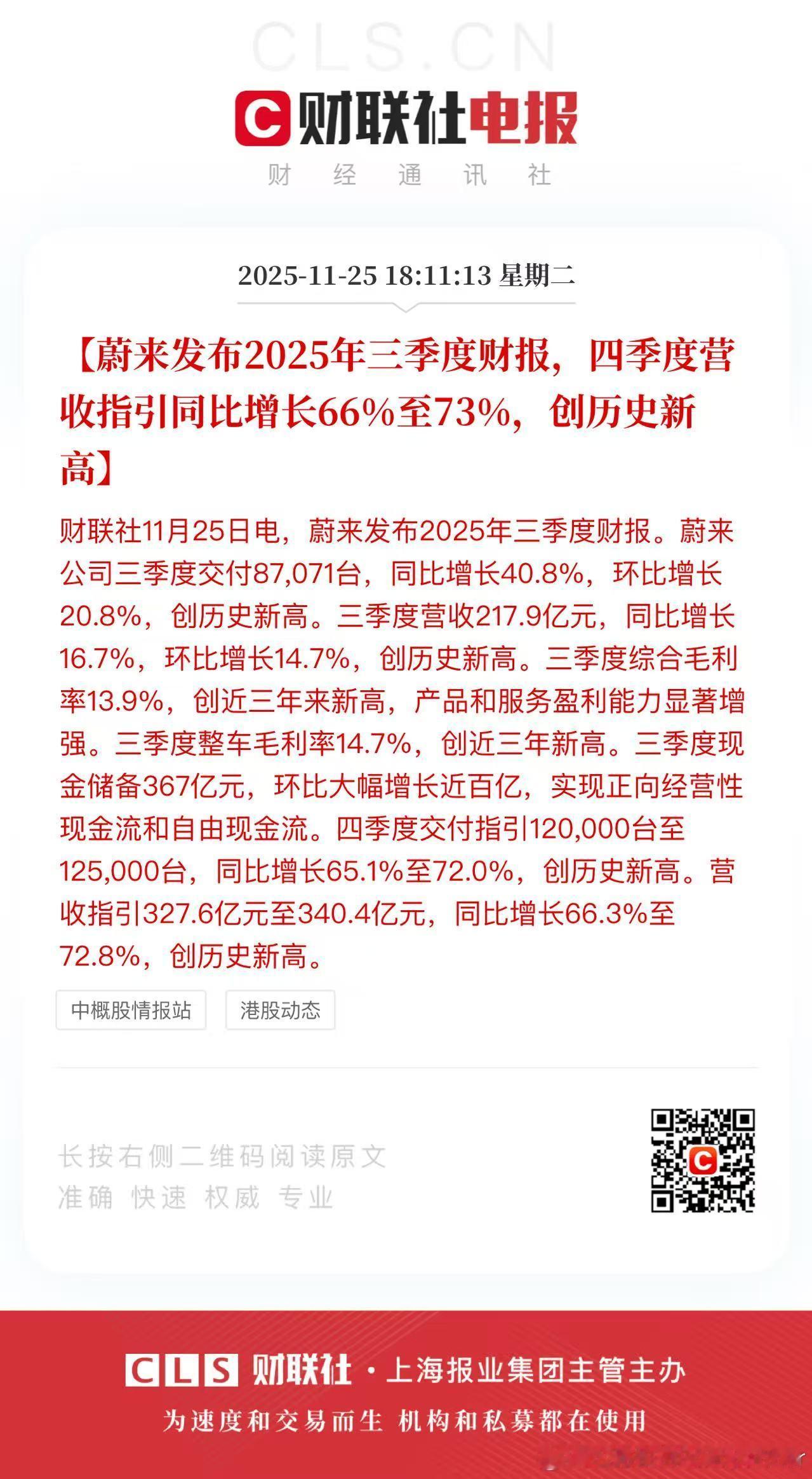 蔚来第三季度财报来了,营收218亿,交付8.7万台,现金储备367亿元,账上现金新增将近百亿怎么办。。。越来越有钱了