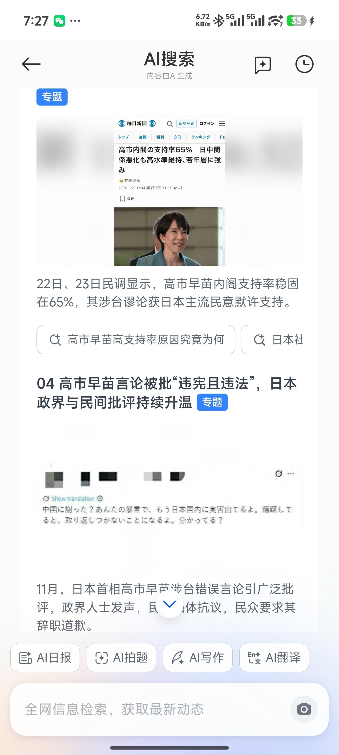 高市早苗到底是受日本支持呢还是受日本批评呢其实中美首长对话之后特朗普要求高市早苗接电话,就已经说明美国不想给日本擦屁股。我觉得高市早苗是希望中美摩擦的。只有中美冲突日本才能坐收渔利。不然美国一直踩着日本不可能反抗,中国目前也打不过。替美国恶心一下中国日本捞不到好处。美国只想啃日本,并不想帮助日本。