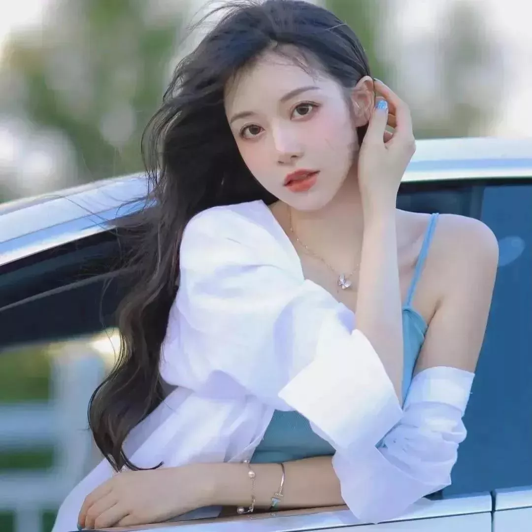 优雅少女倚靠车边,微风轻拂秀发,清新自然。自然清新美少女 温柔美少女 温柔感美女 温婉长发少女 淡雅少女 温柔娴静小女孩 温柔发丝写真 仰头舒展之美女