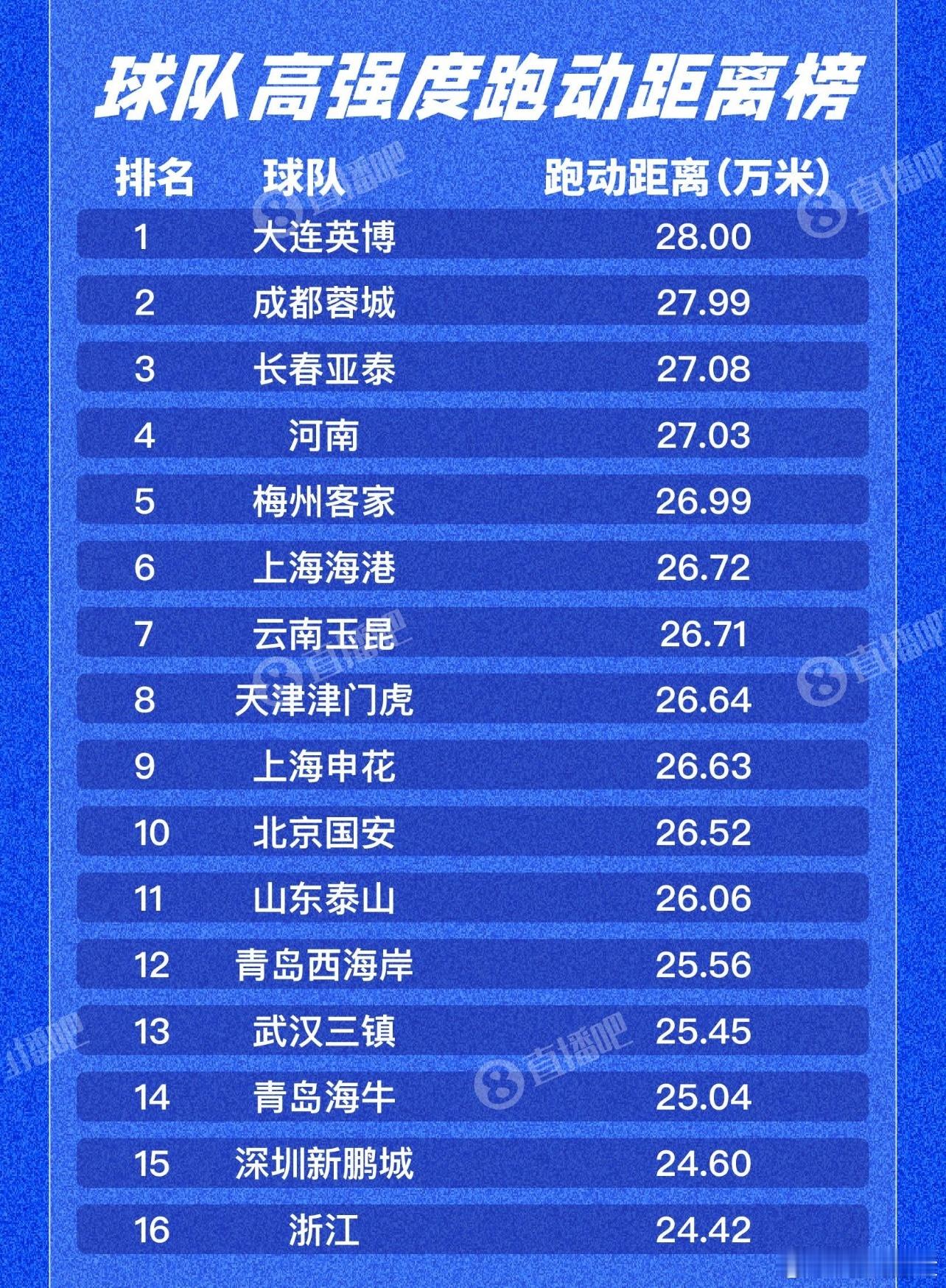 刚看了直播吧的赛季数据,跑动双榜很有趣。梅州和亚泰两支降级球队,无论是总跑动距离还是高强度跑,排名都挺靠前。可能有人会说弱队跑的多正常,但现代足球整体运转特别好的球队,都得特别能跑、会跑,才能支撑他们的攻防体系,比如海港和成都两支前四球队,跑动数据都很出色。另一个有点出乎意料的是申花,双榜排的都有点靠后。不过跑动数据还是应该按单场来看,这样才能大致看出来一支球队的比赛强度波动,整体数据干扰性太大。现在各大数据网站,还不具备实时查看单场的跑动数据,期待早日大规模上线。