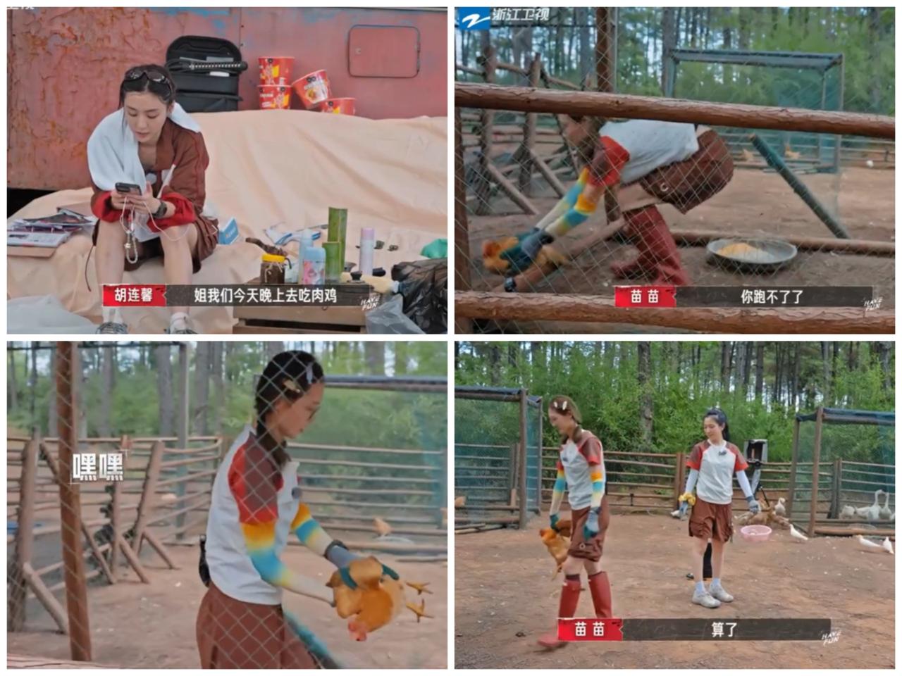 看到苗苗这一顿操作, 网友对于她的质疑 该打消了。 苗苗要去捡鸡蛋, 没有篮子, 她就生剪铁丝, 再将铁丝装在塑料篮子上, 咔咔一顿操作, 就自制成一个手提篮了。 胡连馨打电话给苗苗, 想要晚上吃鸡肉。 于是苗苗面对一大群鸡, 找准目标, 一下子就把一只鸡抓住了。 这让我想起, 陈梦和李嘉格妈妈一起 去抓鸡, 陈梦吓得拿竹筐当作盾牌, 只能干看着。 所以呀, 苗苗还是挺厉害的, 连抓鸡都手拿把掐, 不知道的, 还以为她是一直干农活的呢? 苗苗家后院的有机农场就是这样靠她 一手一脚亲力亲为搞成功的, 所以什么自制菜篮与抓鸡 简直就是小菜一碟呀。 那些质疑苗苗只会带着家人 吸郑凯的“血”的网友可以闭嘴了。 人家苗苗本身很能干, 这下又跟老公一起参加综艺赚钱, 人家明明一家人努力生活, 没有人安心躺平, 为何要抹黑人家呢?