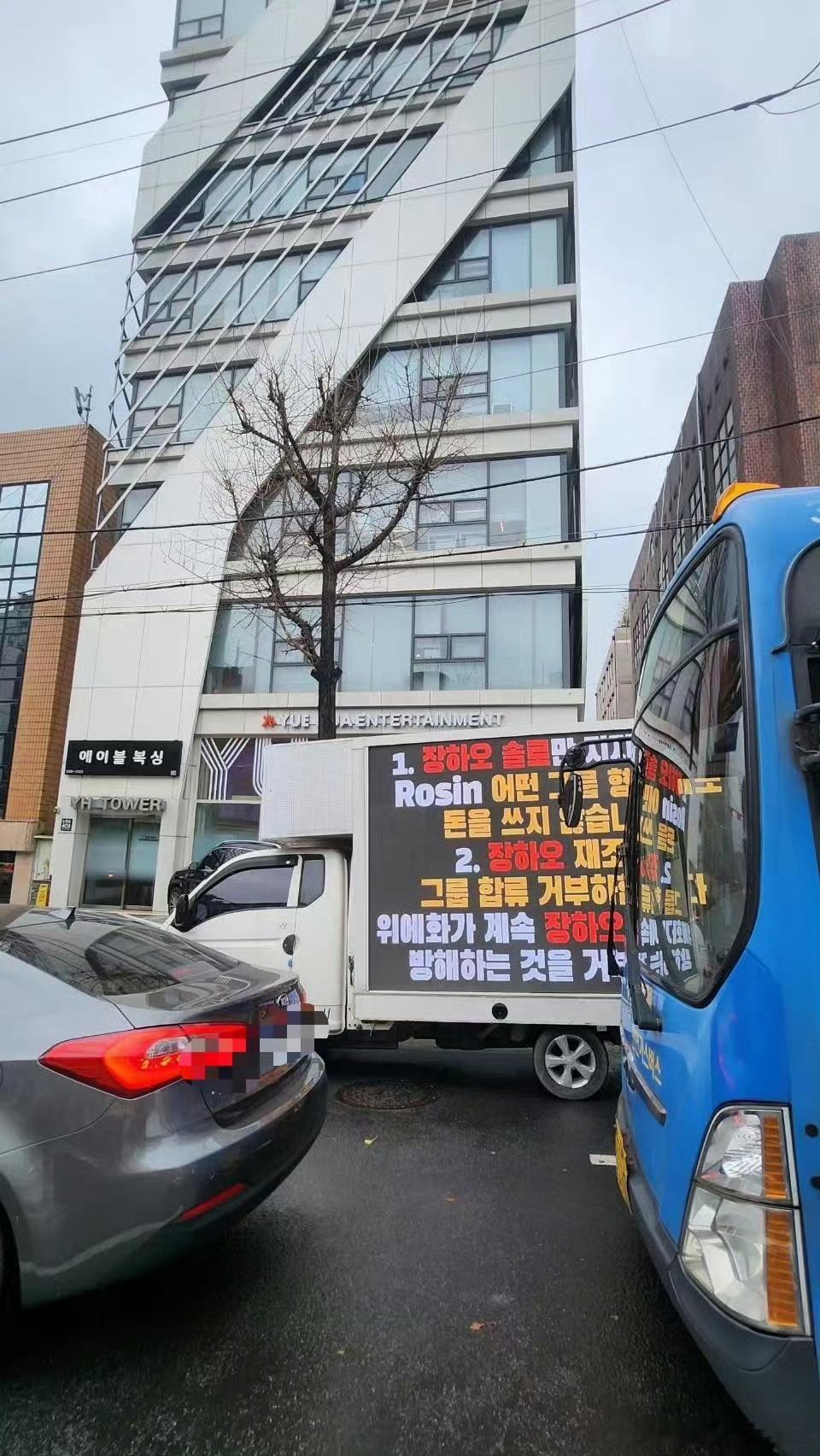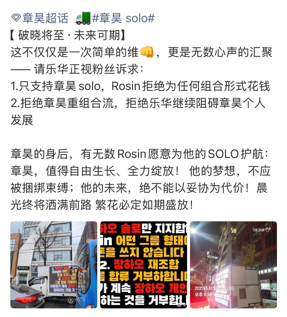章昊粉丝公司楼下卡车维权!支持solo,拒绝章昊重组合流,拒绝乐华继续阻碍章昊个人发展!