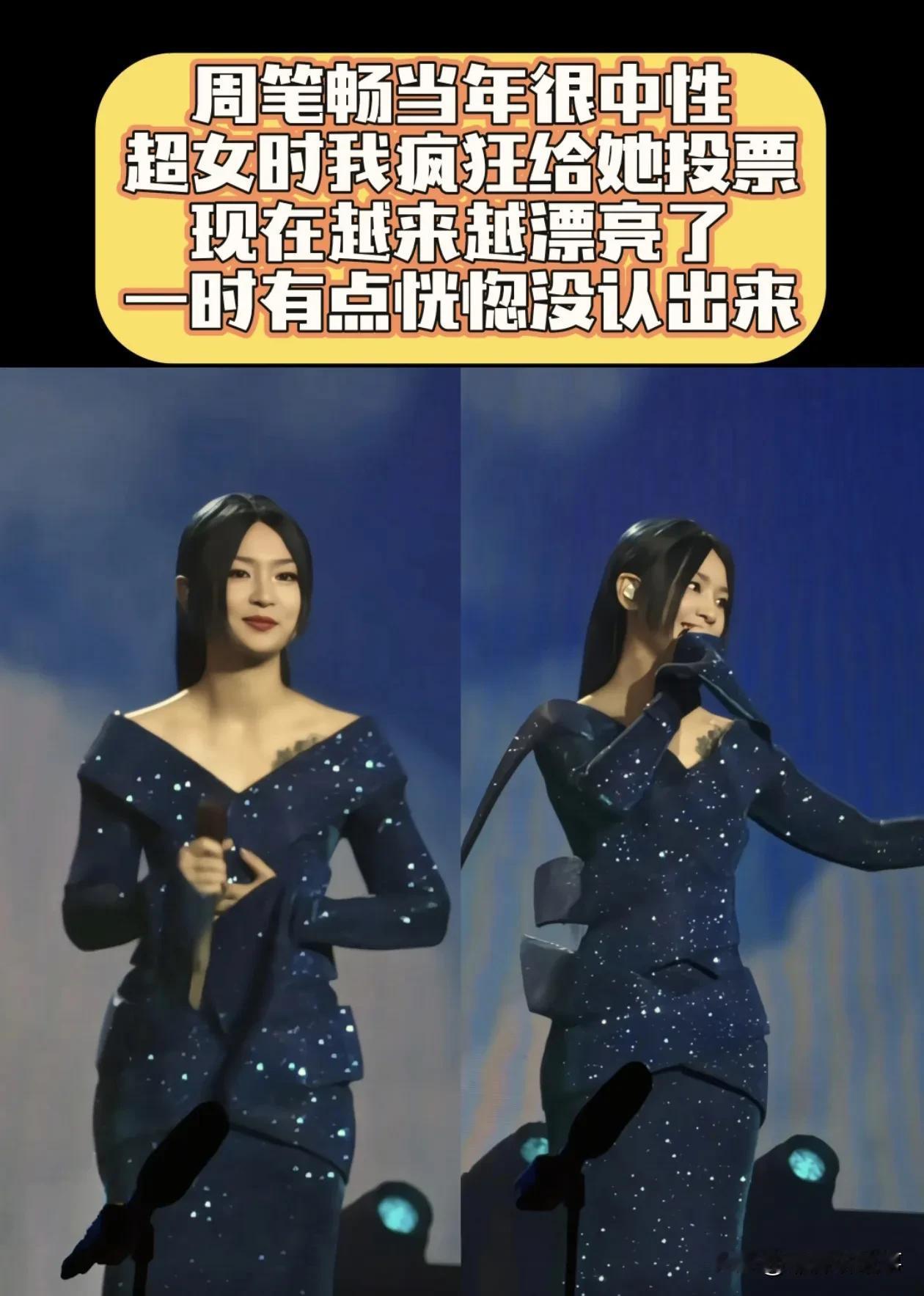 原来中性女生都是潜力股,如今都变成了大美女,而且越来越年轻。 Ella这是弯道超车啊!别的大美女都老了,她越来越年轻漂亮,开始我以为是张柏芝。 周笔畅当年很中性,超女时我疯狂给她投票,现在越来越漂亮了,一时有点恍惚没认出来。