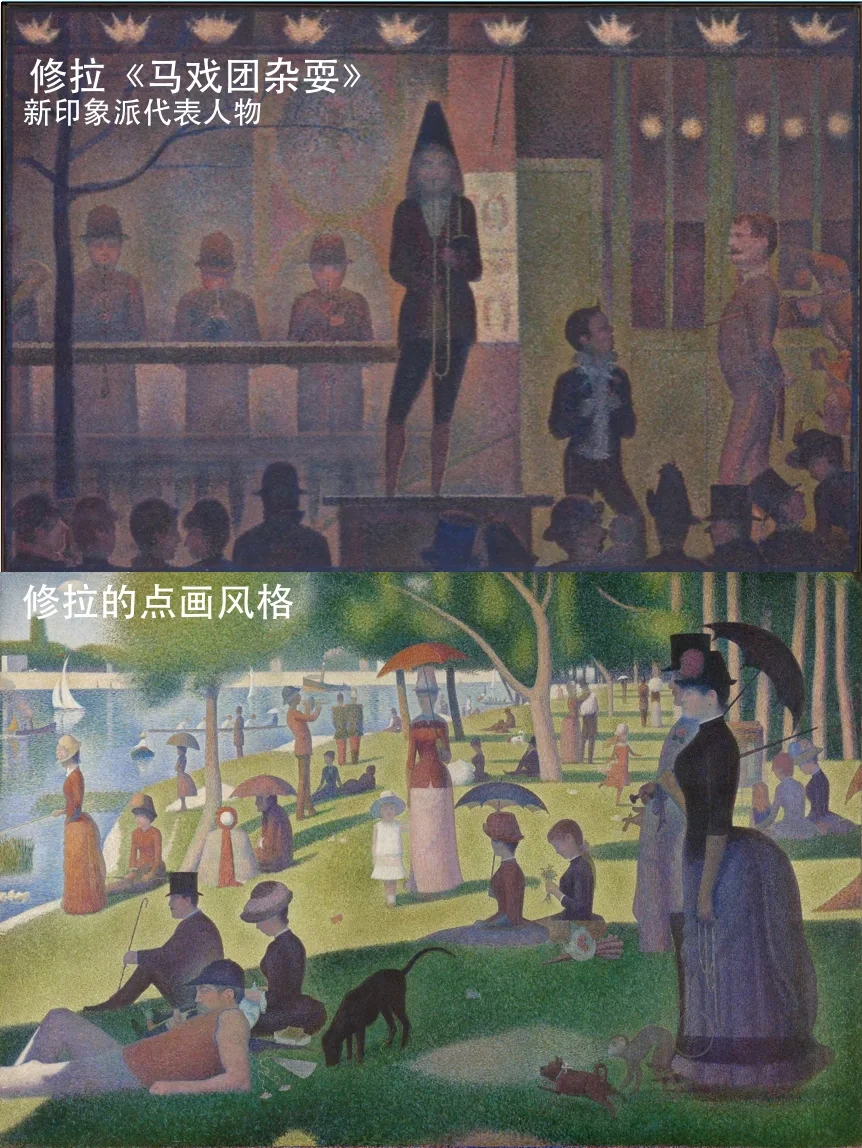修拉是新印象派的代表画家,大都会艺术博物馆收藏了他的《马戏团杂耍》,这是修拉的短暂画家生涯中6幅人物作品之一。