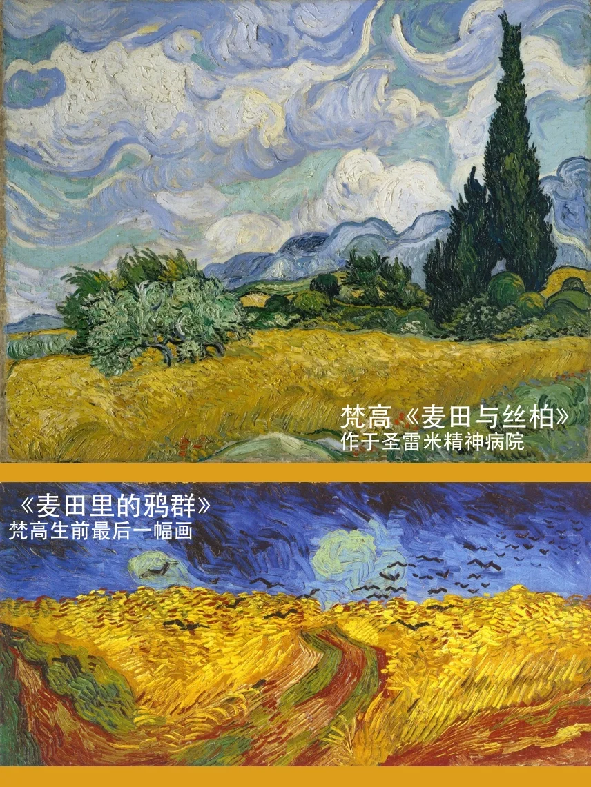 随后梵高入住圣雷米精神病院,大都会艺术博物馆中的《麦田与丝柏》便是他在里面的创作。