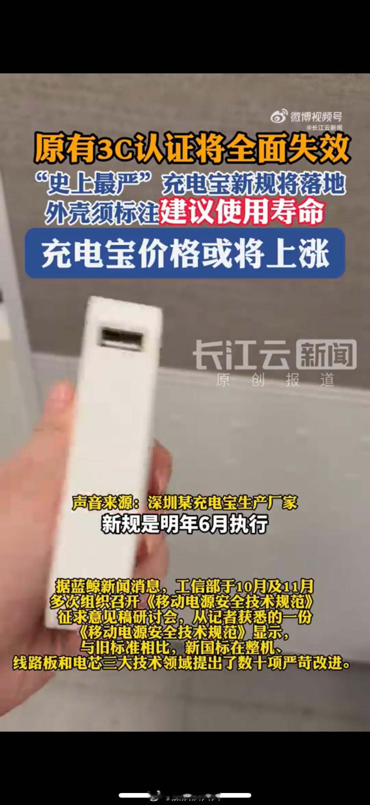 家里现在有五个充电宝,不会到明年全都不能用了吧。如果新认证能让充电宝更加稳定那我也认了,只是这些被淘汰掉的充电宝后续怎么处理会比较安全呢?