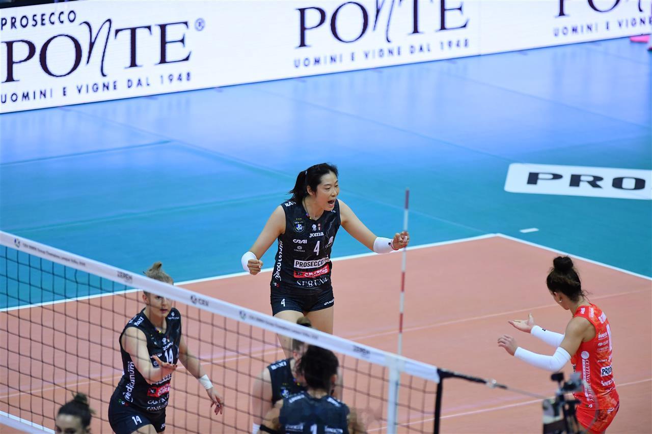 【鏖战五局 科内利亚诺3比2险胜泽仁体育】 正赛小组赛第1轮,北京时间26日清晨结束的比赛,D组的意大利科内利亚诺在主场以3-2(23-25, 26-24, 23-25, 25-22, 20-18)险胜外卡参赛的土耳其泽仁体育,艰难取得开门红。哈克29分,加比21分单场MVP,达尔德罗普17分,法尔12分,朱婷两局6分;乌泽拉克24分,阿列克西奇19分(拦4),拉扎列娃18分,拉蒂纳9分,S·萨欣8分。