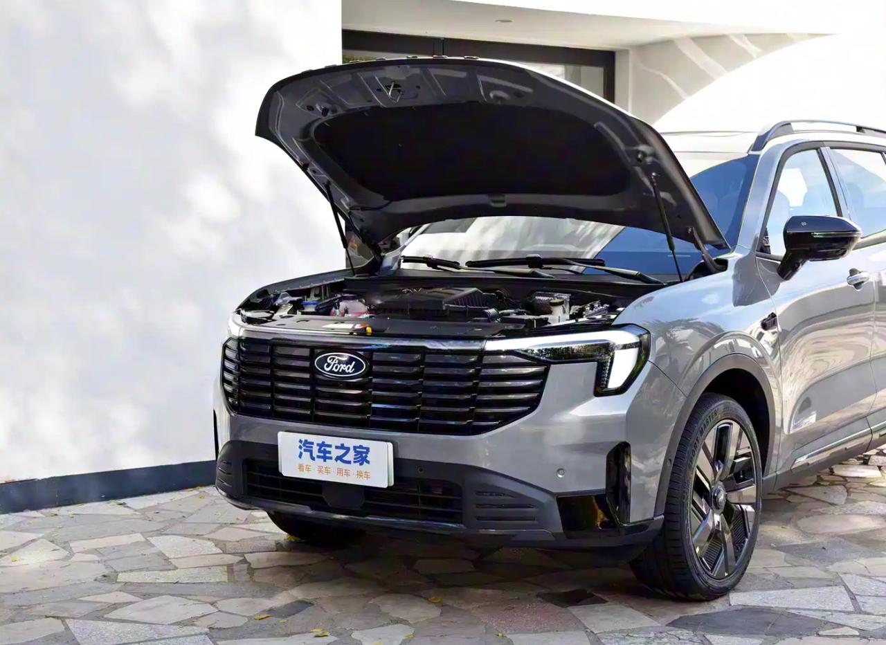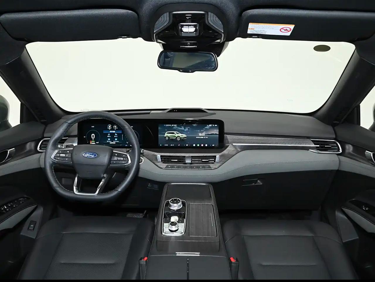 2025款福特领裕新能源产品参数与结构解析 2025款福特领裕新能源是江铃福特推出的中大型插电混动SUV,该车型于2025年11月15日正式上市。其官方指导价设定在20.68万至23.88万元区间,经销商渠道报价为16.98万至20.18万元。 车身尺寸方面,这款车型的长宽高分别为4920mm、1930mm、1760mm,轴距数值为2865mm,外观配色包含星际灰、极光白、曜石黑等品类。前脸采用横向点阵式格栅搭配回旋镖造型大灯,车尾配备贯穿式尾灯,车身线条呈现硬朗的设计特征。 内饰部分,车辆搭载T型中控台与双12.3英寸悬浮联屏,中控台区域设计有镂空储物空间与钢琴烤漆面板,尊领型PLUS版本配备高通8155芯片。座椅布局提供2+2+3与2+3+2两种形式,第二排座椅可实现150mm前后滑动,靠背最大调节角度为32°,车内第二排地台为纯平设计,中间通道宽度达290mm。后备厢基础容积为586L,后排座椅比例放倒后容积可扩展至2176L。 动力系统由1.5T发动机与单电机组成插混架构,匹配2挡DHT变速箱,系统综合功率为270kW,峰值扭矩555N·m,零百加速为7.7秒。车辆搭载宁德时代超级混动电池,CLTC工况下纯电续航里程为110km,综合续航里程可达1205km,亏电状态下百公里油耗为4.75L。 智能配置层面,全系车型标配定速巡航、倒车影像、自动驻车功能,尊领型PLUS版本额外配备APA5.0全自动泊车、透明底盘功能,车辆支持对天窗、车窗、空调等设备的全场景语音控制。安全配置上,车辆配备7个安全气囊,同时搭载前方碰撞预警、主动刹车、车道偏离预警、车道保持辅助等主动安全系统。 (图片来源:汽车之家)