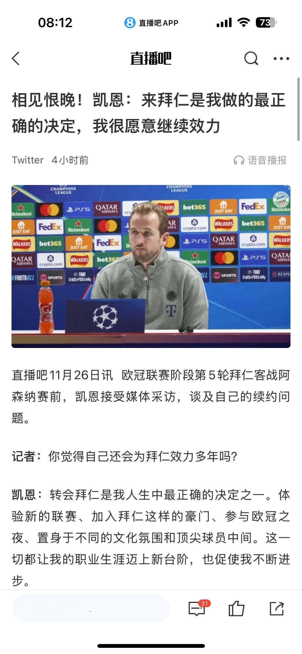 凯恩这种球员感觉去哪个队都能成功! 曼联想买没买到,至今还想买。 利物浦缺超级中锋,切尔西也缺,但是热刺不卖英超豪门。 皇马就没有真正的9号位,皇马球迷眼馋凯恩。 巴萨要是有钱买,就不用年龄更大的莱万了。 意甲豪门谁不喜欢凯恩呢?? 只有曼城不需要,人家有哈兰德。 偏偏凯恩被拜仁买走,活该拜仁称霸德甲,甚至有望冲击欧冠冠军呀![大金牙]