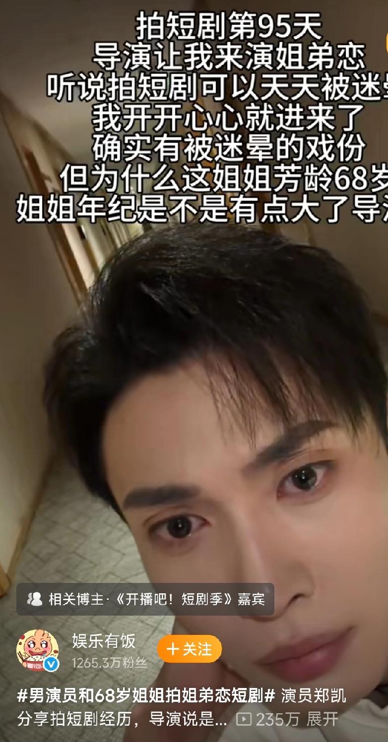 演员郑恺分享的一段拍短剧的经历可真是把大家逗乐了,成了网络上的热门话题。 事情是