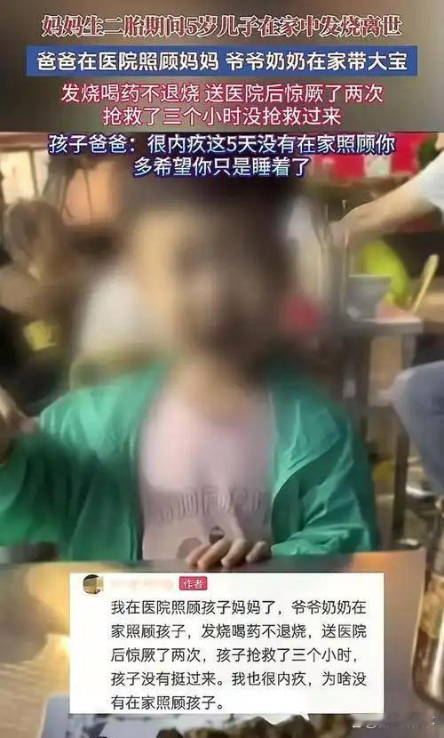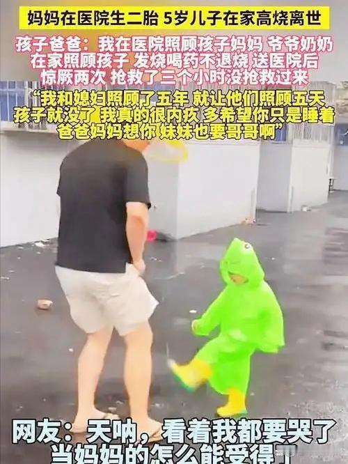 新生啼哭与永别叹息:5岁娃的最后牵挂,戳痛千万父母 产房里二胎女儿的啼哭尚在耳畔,河南一位父亲却接到了此生最残酷的电话——5岁儿子小宇在家中高烧离世,距离他上次视频叮嘱孩子多喝水,不过短短五天。 这个本该儿女双全的家庭,在2025年11月遭遇了命运的重击。妈妈临盆住院,爸爸全程陪护,懂事的小宇被托付给同小区的爷爷奶奶照看。视频里,孩子说“有点不舒服”却仍强打精神笑,家人以为只是普通感冒,没曾想急性肺炎正悄然吞噬着幼小的生命。当奶奶次日上门发现反锁的家门,破门而入时,小宇已倒在地上,身体冰凉,身边散落着退烧药包装,离世时体温高达40.2℃。 “别告诉爸爸,他照顾妈妈呢”,孩子高烧迷糊时的念叨,成了刺向父母心头最锋利的刀。爸爸捧着儿子亲手为妹妹取的“念念”之名,一遍遍抚摸孩子的照片,哽咽着忏悔:“就五天,我怎么能让他独自面对?”月子里的妈妈得知噩耗瞬间崩溃,新生的喜悦被彻底淹没在丧子之痛中。 悲剧迅速引发全网热议。有人痛惜“再懂事的孩子也扛不住无人守护的意外”,有人反思“生二胎前,老大的照料预案不能少”,也有人共情老人的无力——爷爷奶奶已尽力护理,却难敌突发重症。专家紧急提醒,12岁以下儿童不应单独留居,高热惊厥时需保持呼吸道通畅,切勿盲目按压。 这场悲剧不是谁的过错,却暴露了多孩家庭的监护痛点。新生与离世的强烈反差,懂事孩子的最后牵挂,让无数父母泪目:为人父母,最痛的莫过于“我以为还有机会陪伴,却已成永别”。愿每个孩子都能被周全守护,愿这样的遗憾不再重演。宝宝离世 5岁孩子离世
