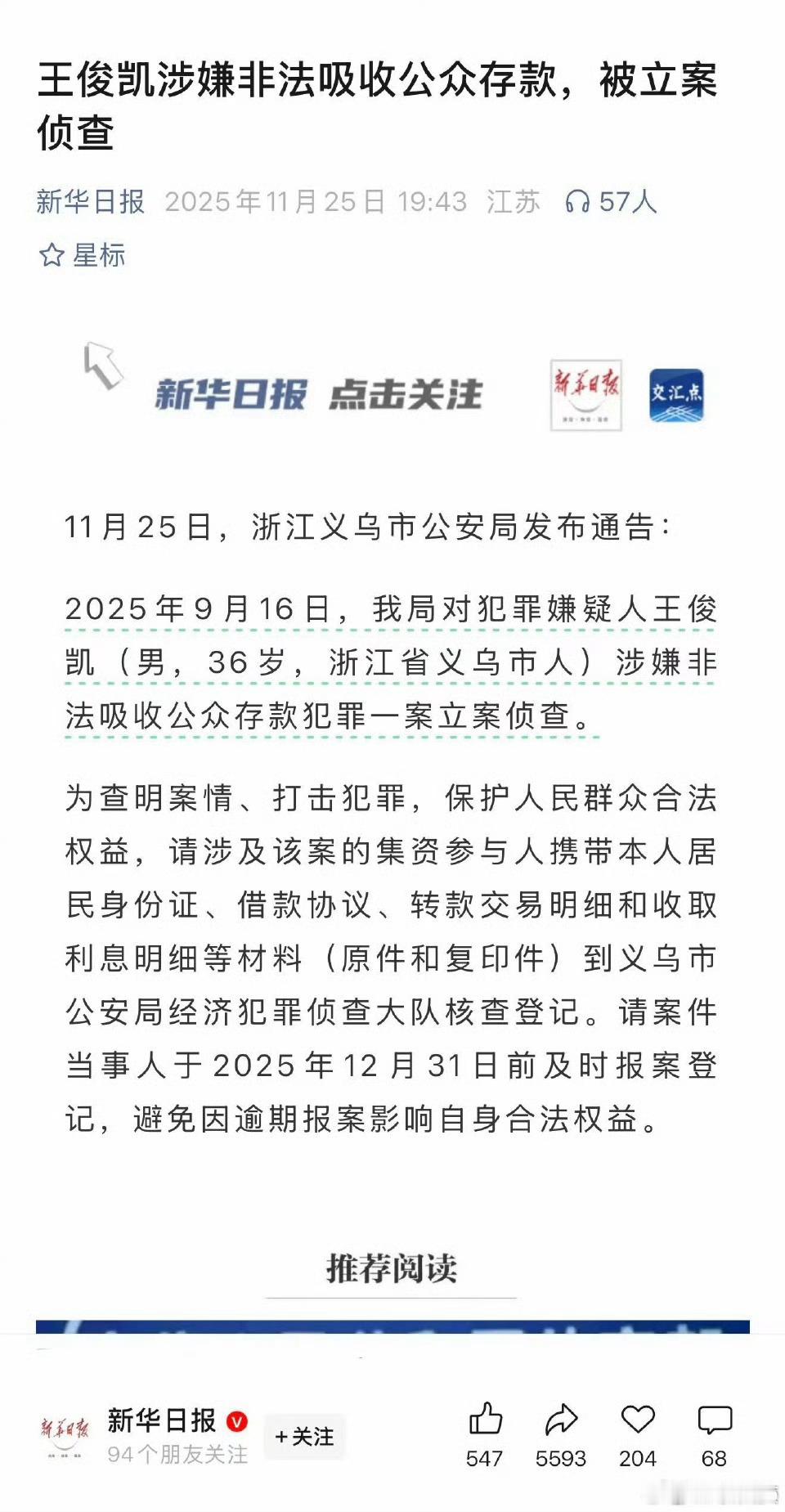 36岁王俊凯涉嫌非法吸收公众存款被立案侦查我就是说有点奇怪,能不能说明一下呀新闻人士们